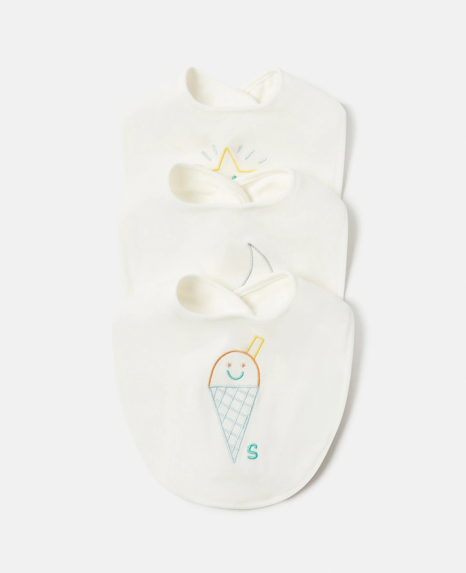 Match their bib to the week’s weather with this handy seven-pack of bibs from Stella McCartney Kids. Crafted from organic cotton jersey rib, they’re elevated with weather icon-inspired embroidery at the front.