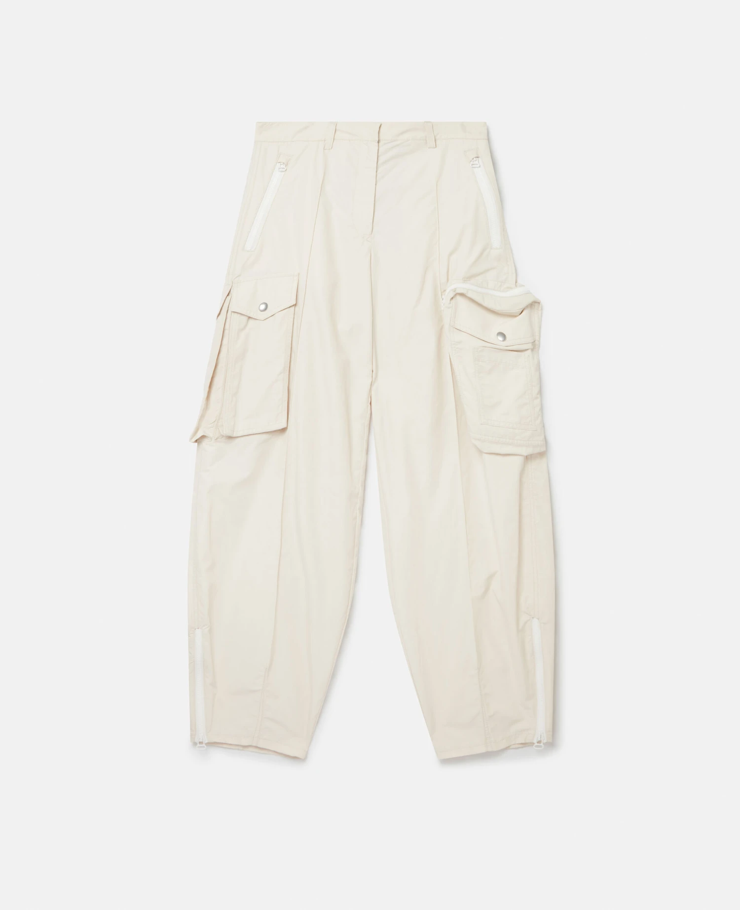 Tap into utilitarian aesthetics with these cargo trousers from Stella McCartney in creamy petal white. This pair has a bold balloon leg and mid-rise fit, equipped with cargo pockets at the knees.