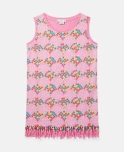 Capture a lively attitude with this pink sleeveless jumper dress from Stella McCartney Kids. Responsibly made from organic cotton knit, the dress has an alternating beaded fan motif and a retro, fringed hem – perfect for parties and playtime.