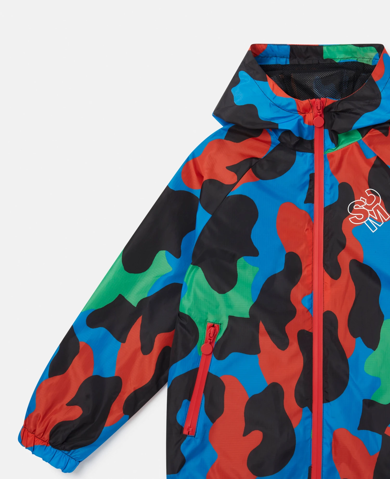 Embolden their Spring Summer 223 adventures with this vibrant hooded jacket from Stella McCartney Kids. Made from woven recycled materials in a bright all-over camouflage print, the jacket has cosy long sleeves and zipped pockets.