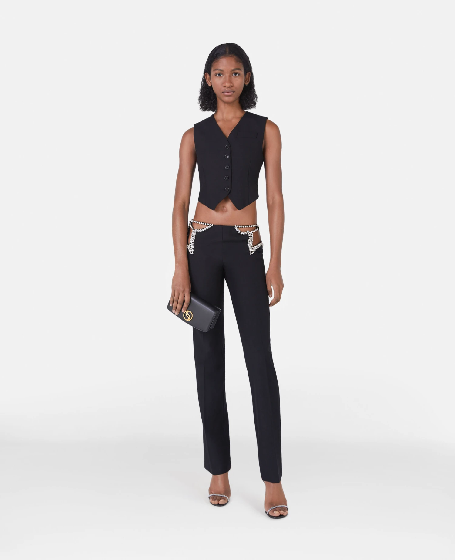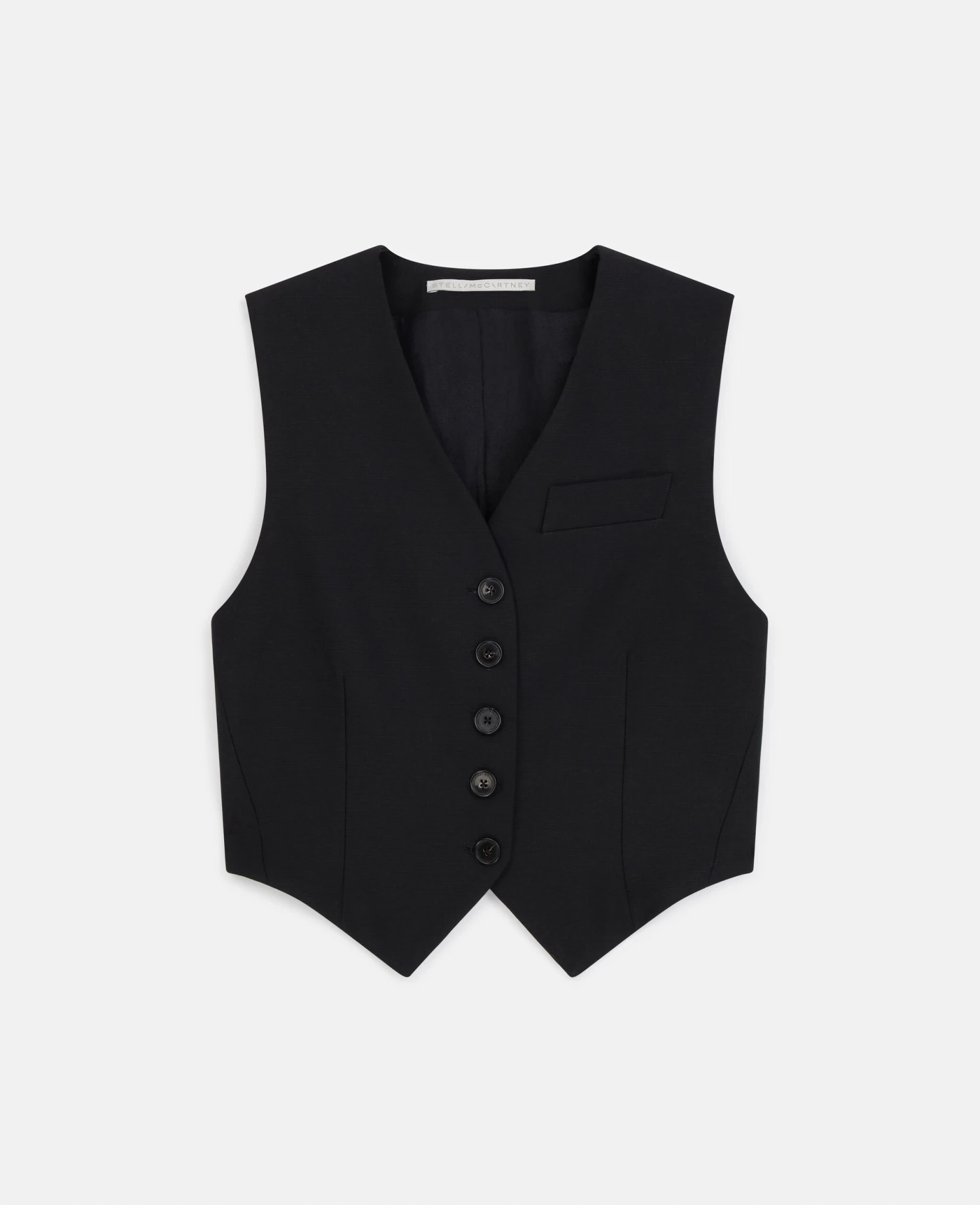 Relaxed Savile Row tailoring makes a return this Summer 223 with this cropped waistcoat. Crafted responsibly from FSC-certified forest-friendly viscose canvas, the tailored jacket can be worn alone or layered with jersey or blazers.