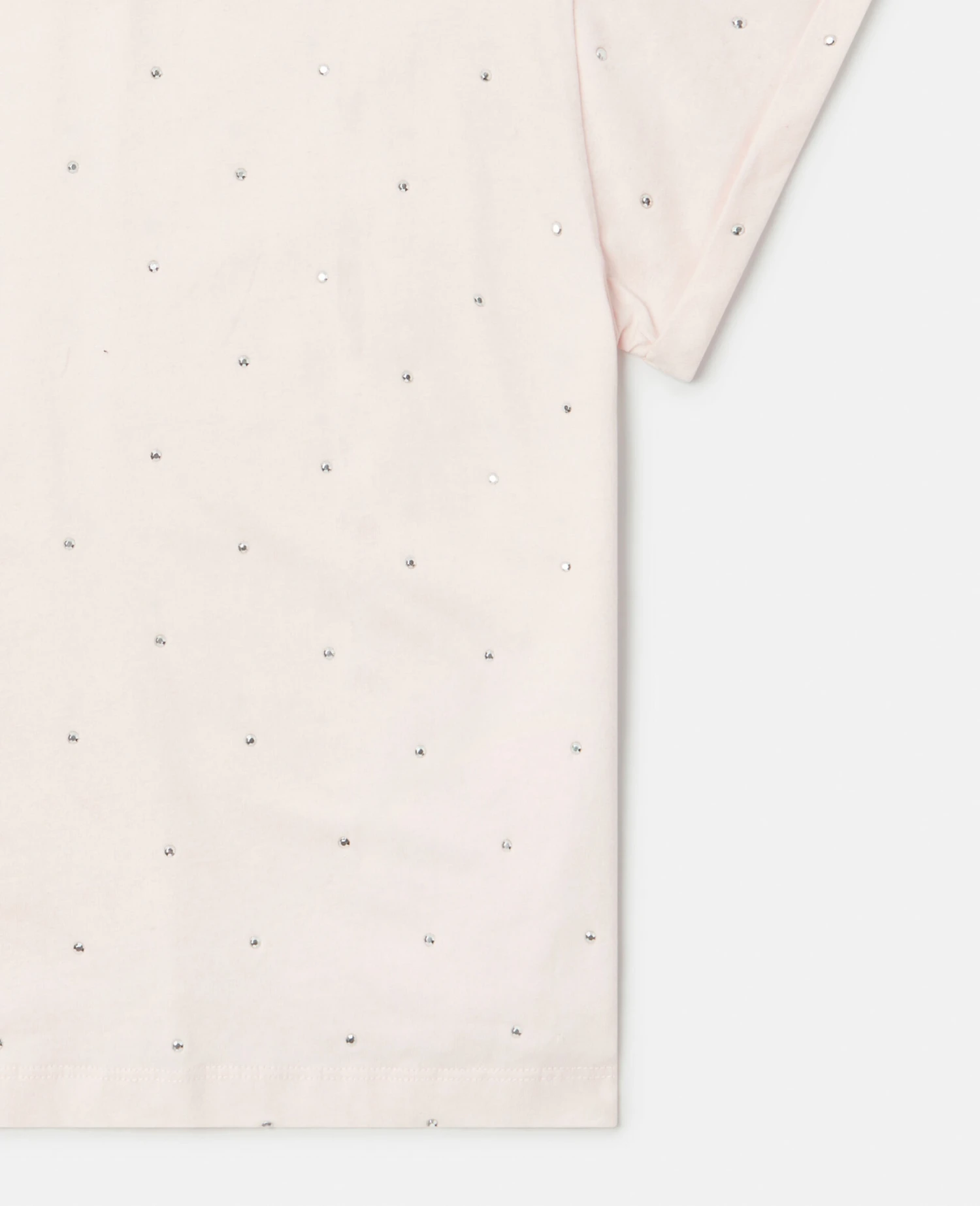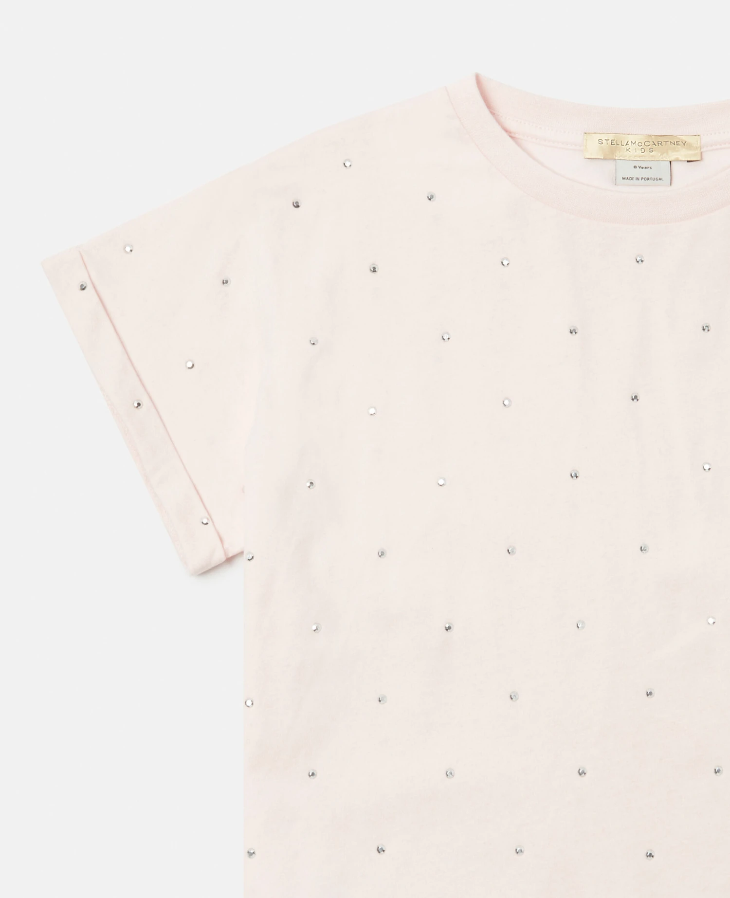 Imagined in soft pastel pink, this cotton jersey t-shirt from Stella McCartney Kids is detailed with all-over crystal details. The boxy fit tee has a crew neck and short sleeves.