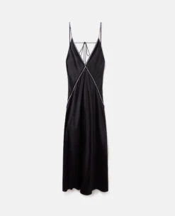 Spring 223 pairs themes of rewilding with a natural glamour. This body-skimming maxi dress is distinctively styled with a deep V-neckline, covered in a sheer mesh with a delicate, shimmering crystal frame across the bodice and waist.