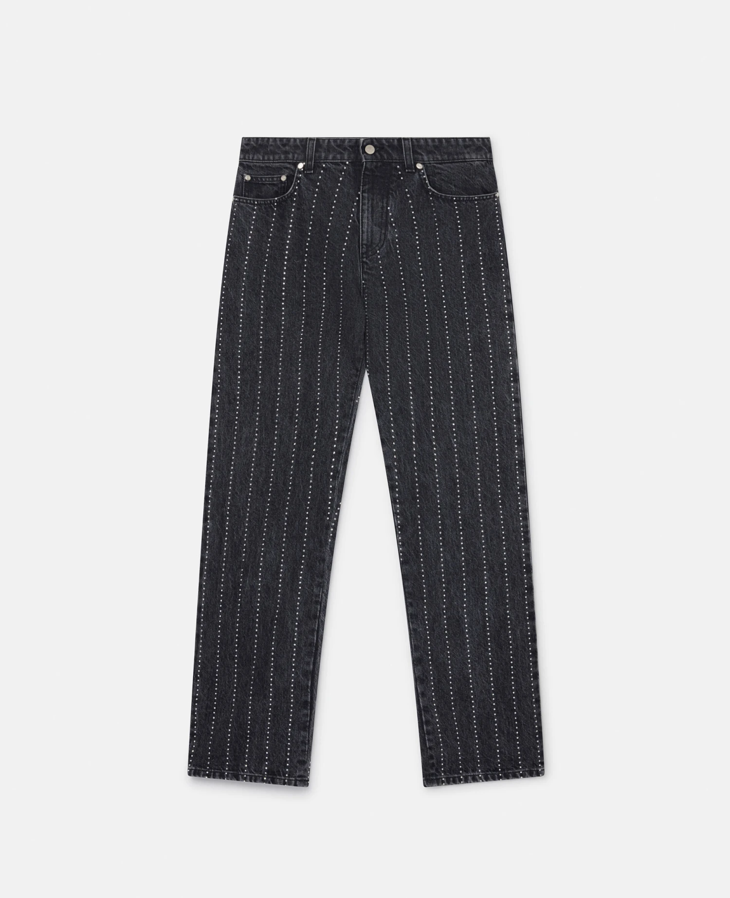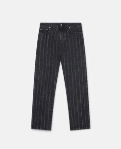 Draw off-duty looks together with these washed black straight leg jeans from Stella McCartney. This pair sits mid-rise and is crafted from organic cotton with crystal pinstripes, adding a glimmer to every step forward.