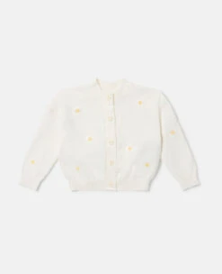 Put a floral Stella twist on baby’s first wardrobe with this organic cotton cardigan from Stella McCartney Kids. The button-up cardigan features delicate daisy embroidery all-over.