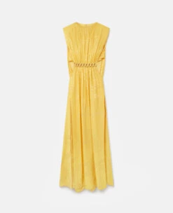 In mood-lifting sunflower yellow, this maxi dress from Stella McCartney is a celebration of the joys of nature and youth. The dress is covered in an all-over Falabella chain print, brought together by a tonal Falabella belt that cinches in at the cut-out waist.