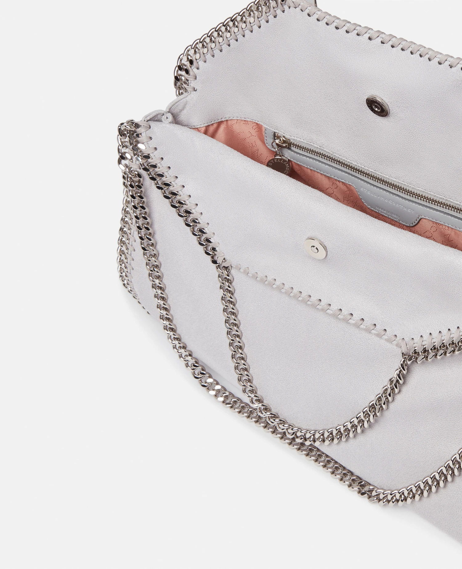 Hand-laced with GOTS-certified organic cotton, the Falabella tote bag is a timeless Stella icon. This everyday tote is responsibly made from our grained vegan Shaggy Deer fabric with a palladium diamond-cut chain and a long shoulder strap for adaptable wear.