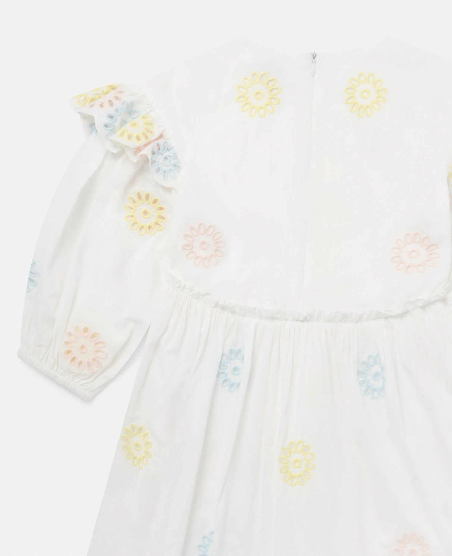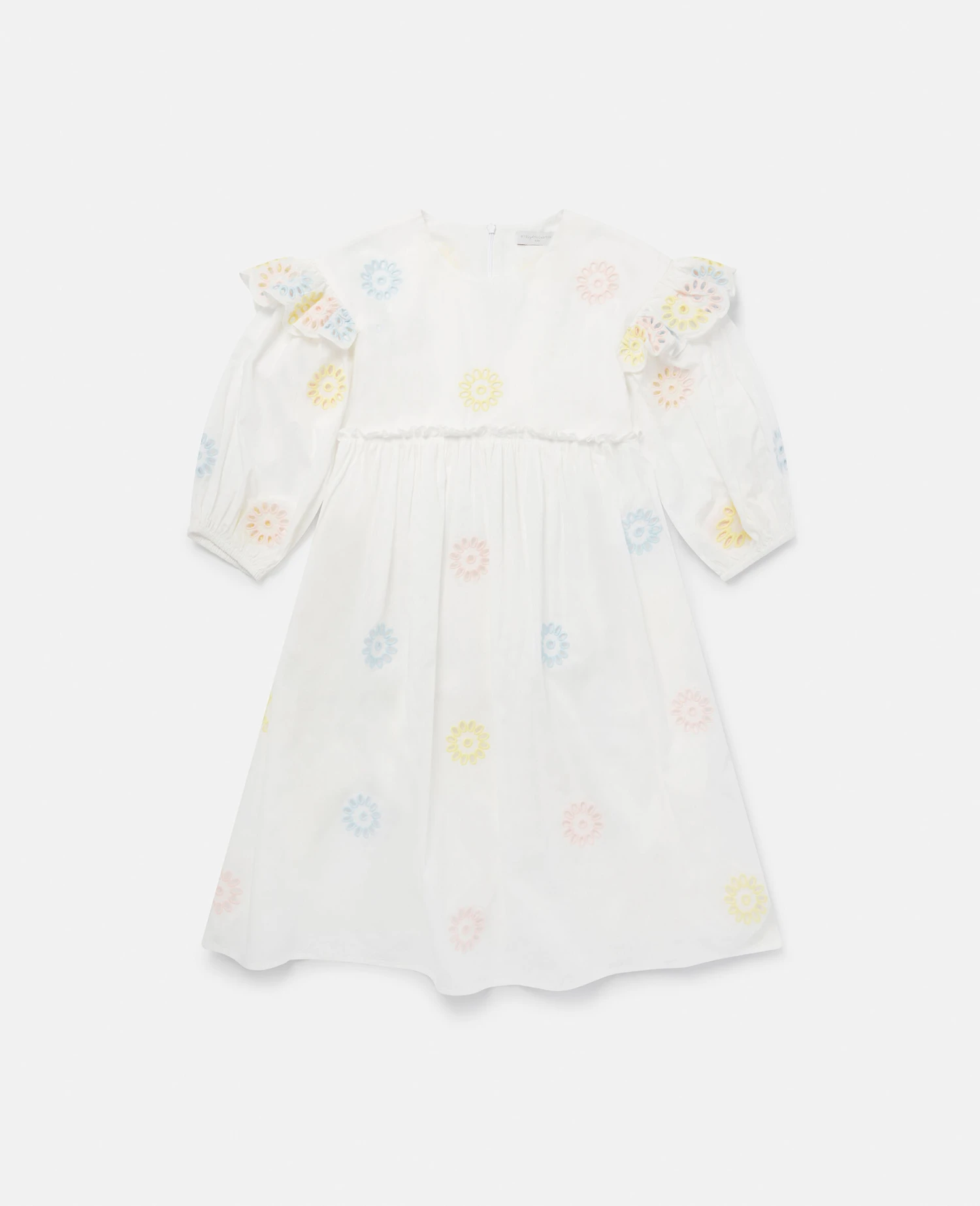 A celebration of love, friendship and Mother Earth, this cotton voile dress from Stella McCartney Kids lets girls embrace their inner flower child. The dress is elevated with pastel flower crochet details all over, plus girlish frill trims and puff sleeves.