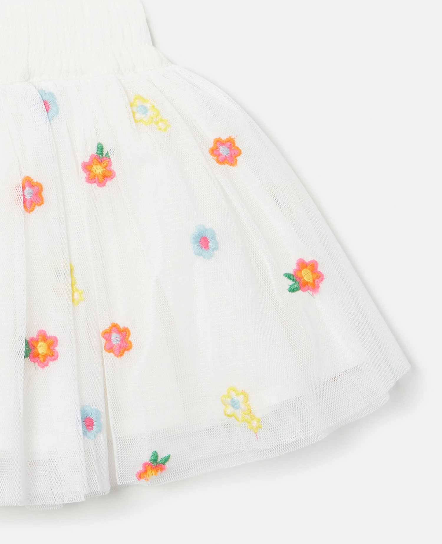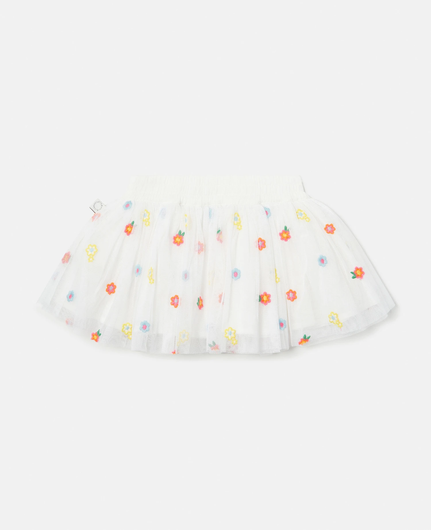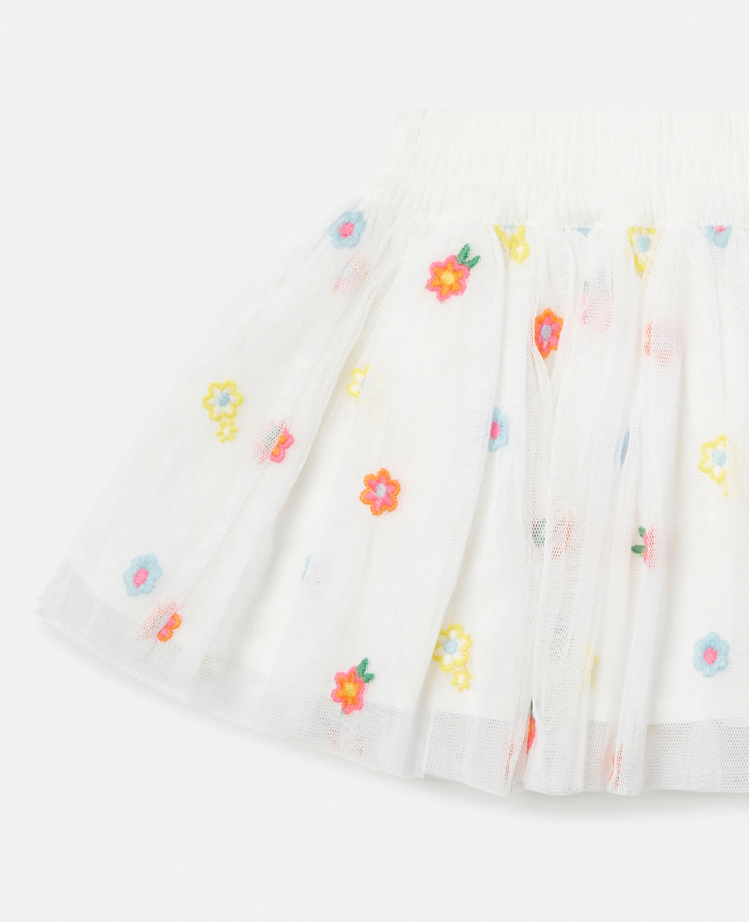 Embrace a flower child aesthetic with this tulle skirt from Stella McCartney Kids. The layered skirt features a stretch waistband and a sweet flower embroidery overlay.