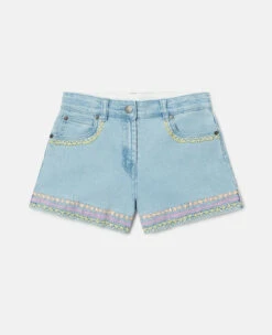 Bring a hippie charm to her Spring Summer 223 wardrobe with these embroidered denim shorts from Stella McCartney Kids. Made from light wash blue denim, the shorts are simply elevated with flower line embroidery around the pockets and at the hem.