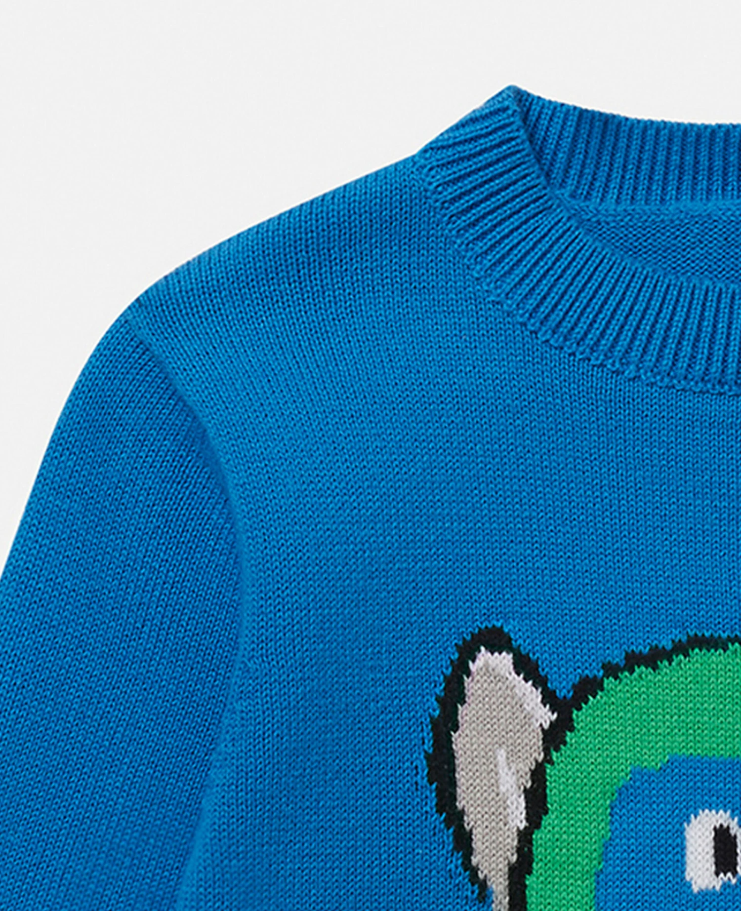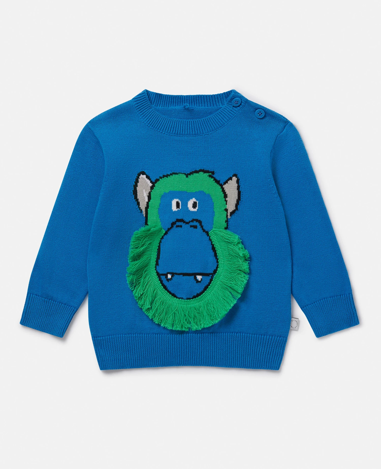 Essential for transitional weather, this pure organic cotton jumper from Stella McCartney Kids adds a bold injection of colour to baby looks. The jumper features a monkey face intarsia knit at the front with fun fringed edges.