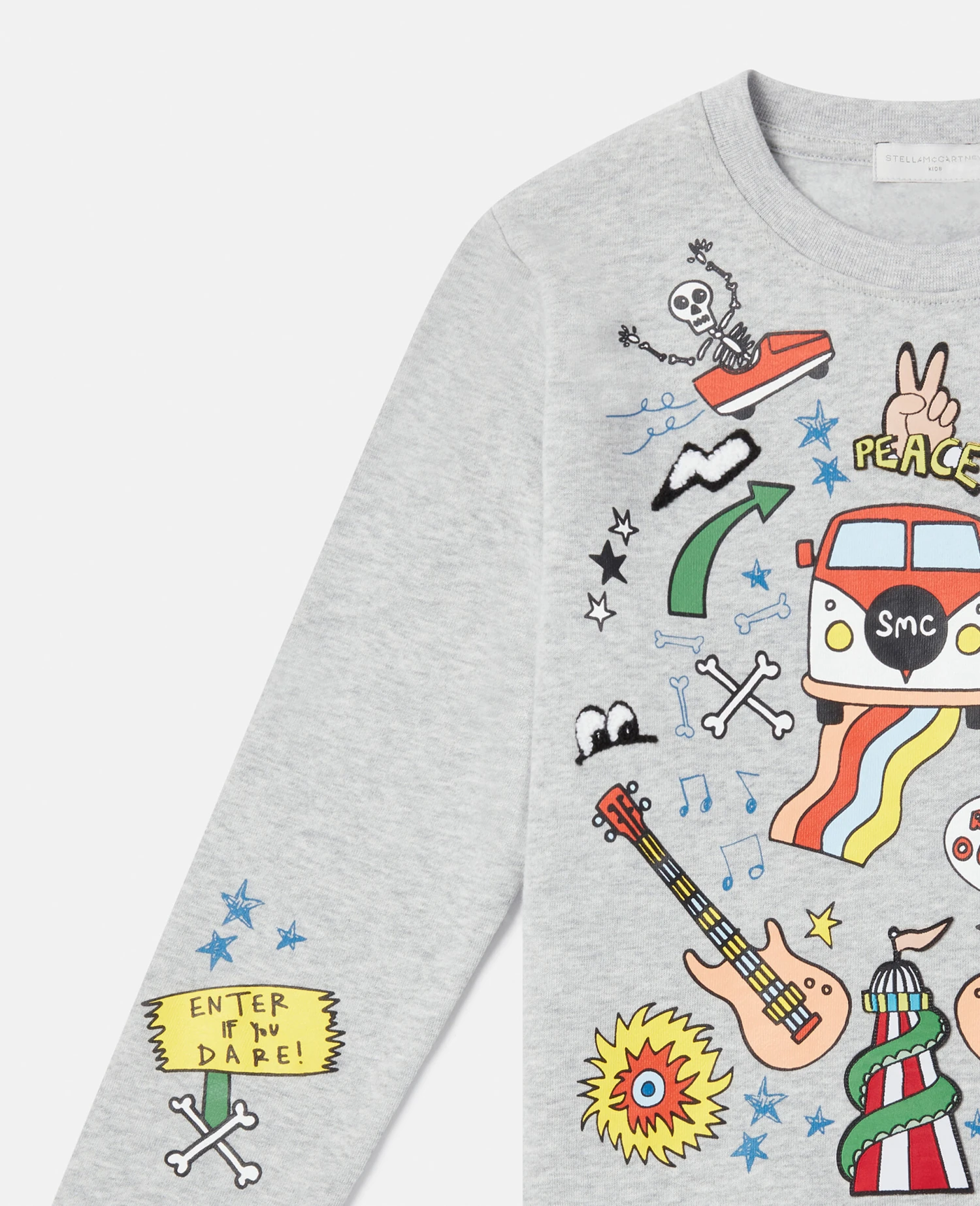 This season, Stella boys take on humorous attitudes with fairground-inspired designs. This grey marl sweatshirt from Stella McCartney Kids features rainbow-bright camper van and funfair motif embroidery at the front.