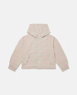 Shelter from spring showers with this hooded jacket from Stella McCartney Kids. The jacket has an all-over baby pink and lemon yellow gingham check pattern, finished with a practical button collar for added warmth and flap pockets at the front.