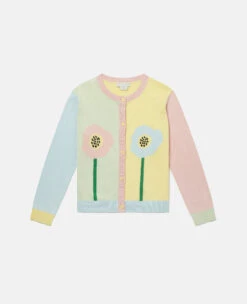 Clean colourblocked lines and graphic flowers make this cardigan an elevated piece for Spring Summer 223. The pastel multicolour cardigan adds a snug layer to seasonal looks, finished with a contrast trim at the neckline, cuffs and hem.