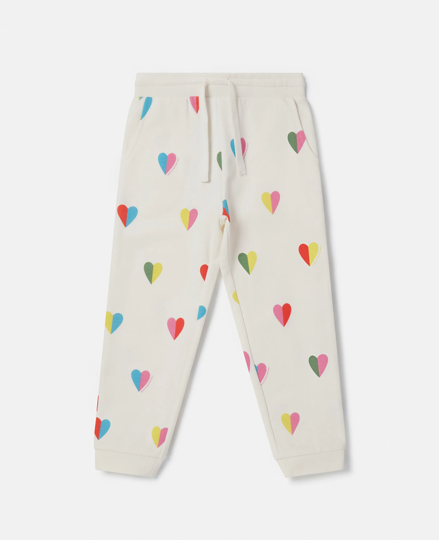 Downtime dressing is even more joyful with these printed white joggers from Stella McCartney Kids. Consciously crafted from organic cotton fleece, the joggers have an all-over multicolour heart print and fit slim through the leg.