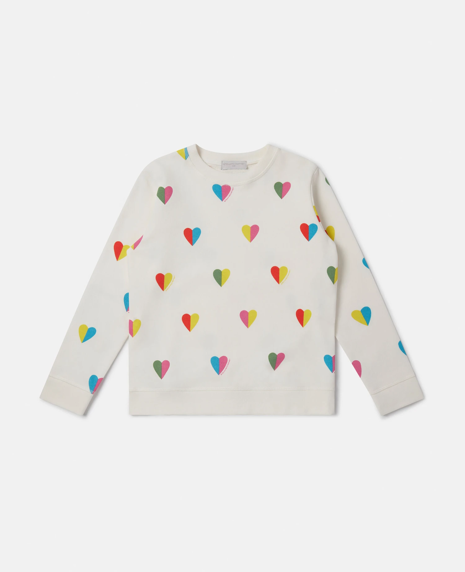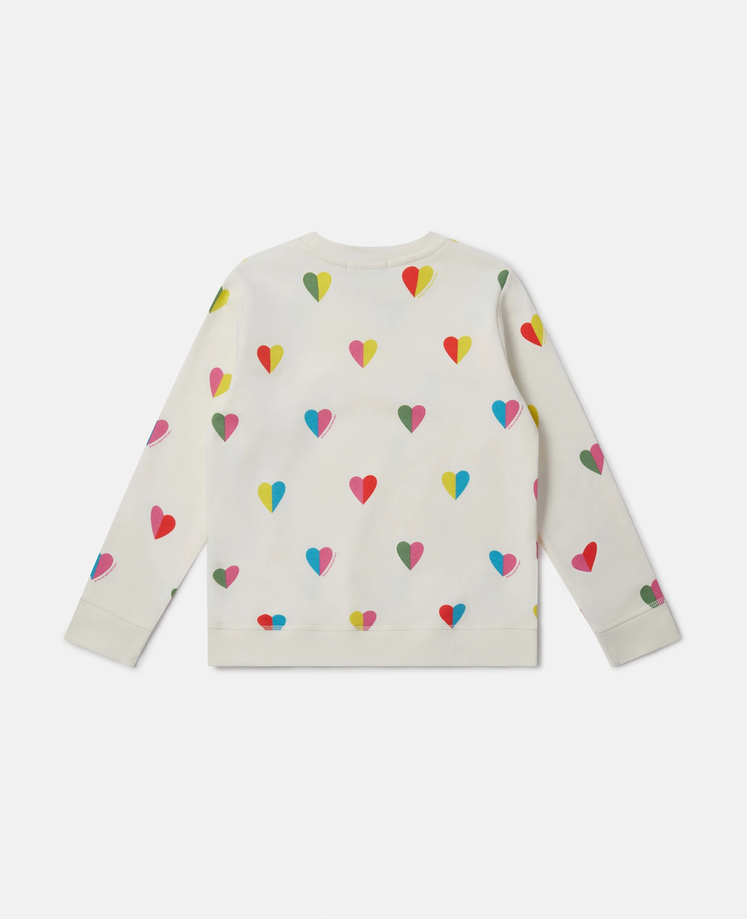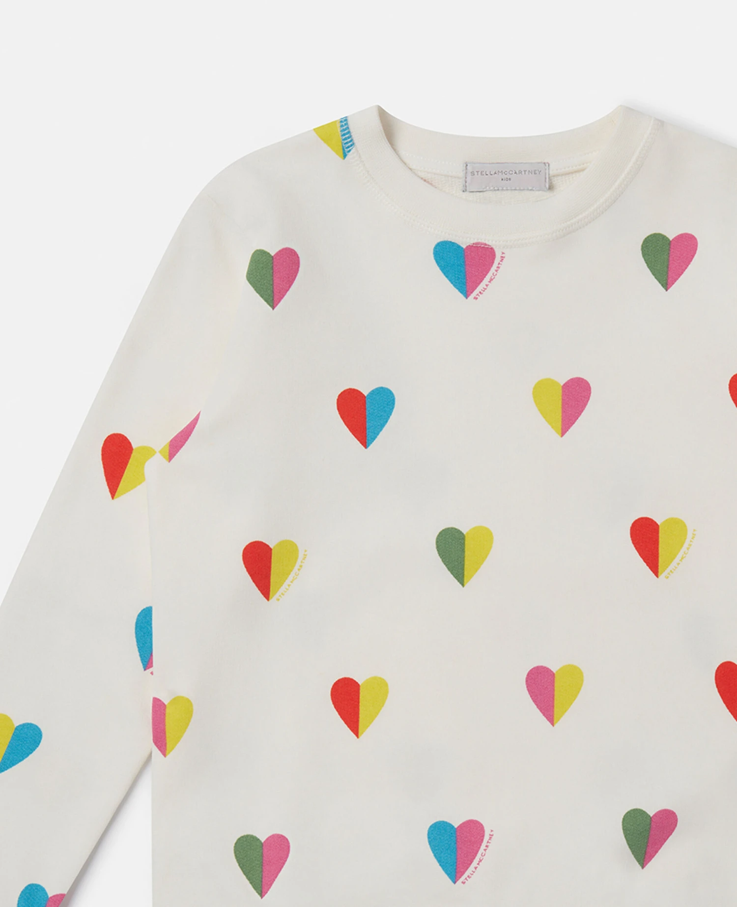 Consciously crafted from organic cotton fleece, this longline sweatshirt adds a snug layer for chillier spring days. The sweatshirt has a joyful all-over heart print in an equally joyful colour palette.
