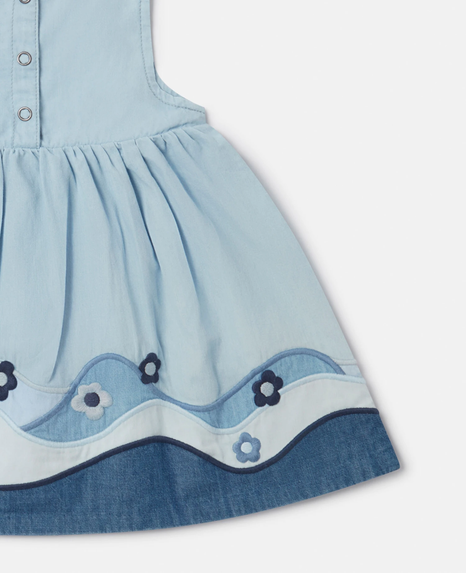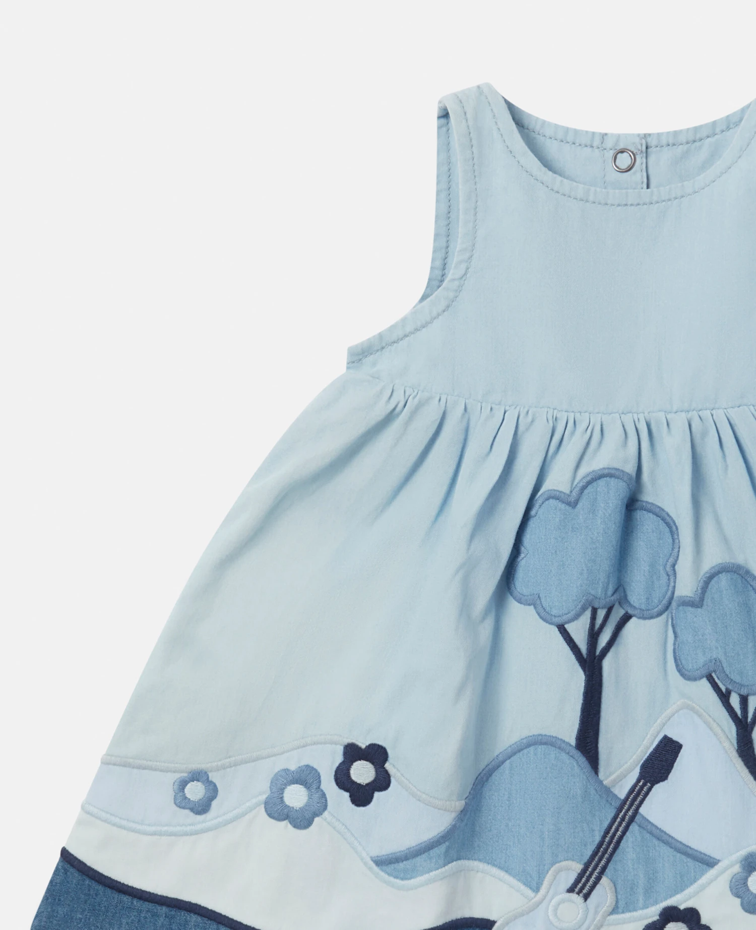 Showing them a love for Mother Earth from day one, this baby patchwork dress from Stella McCartney Kids features multi-tonal blue landscape appliqués allover. The dress is made from lightweight cotton chambray with a button fastening at the back.