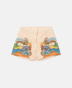Let her chase her dreams in a soft-hued paradise this Spring Summer 223 with these printed shorts from Stella McCartney Kids. The shorts are responsibly made from organic cotton gabardine in powder pink, with multicolour guitar prints and swirling designs at the legs.