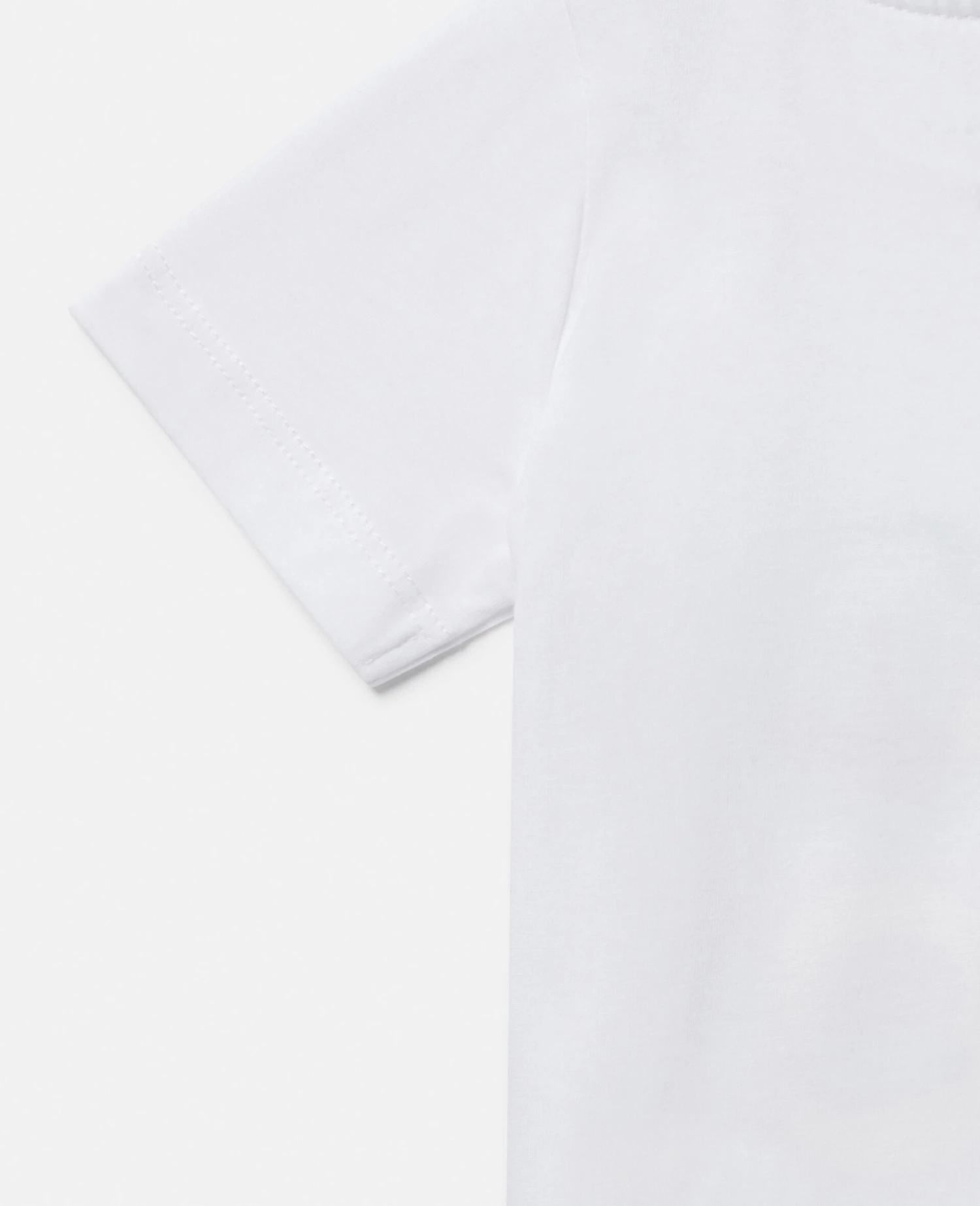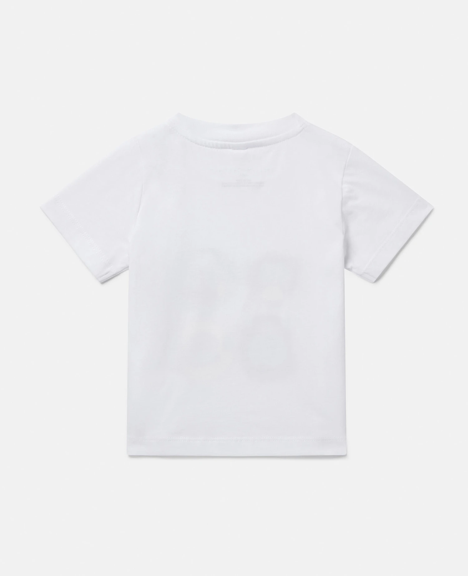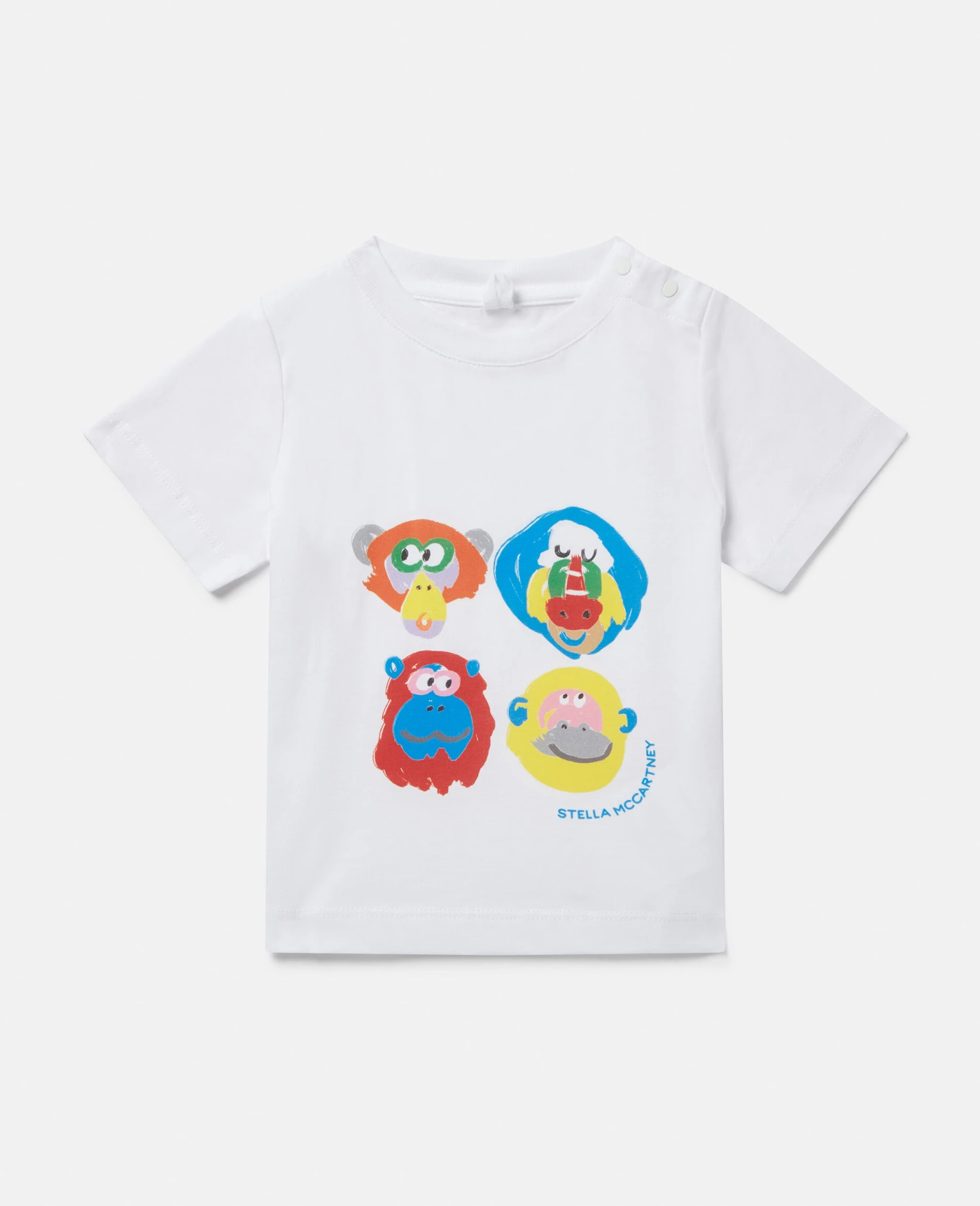 Cheer on humorous attitudes first with this white graphic t-shirt from Stella McCartney Kids. The baby t-shirt is consciously crafted from organic cotton jersey with a monkey family of four printed at the front.