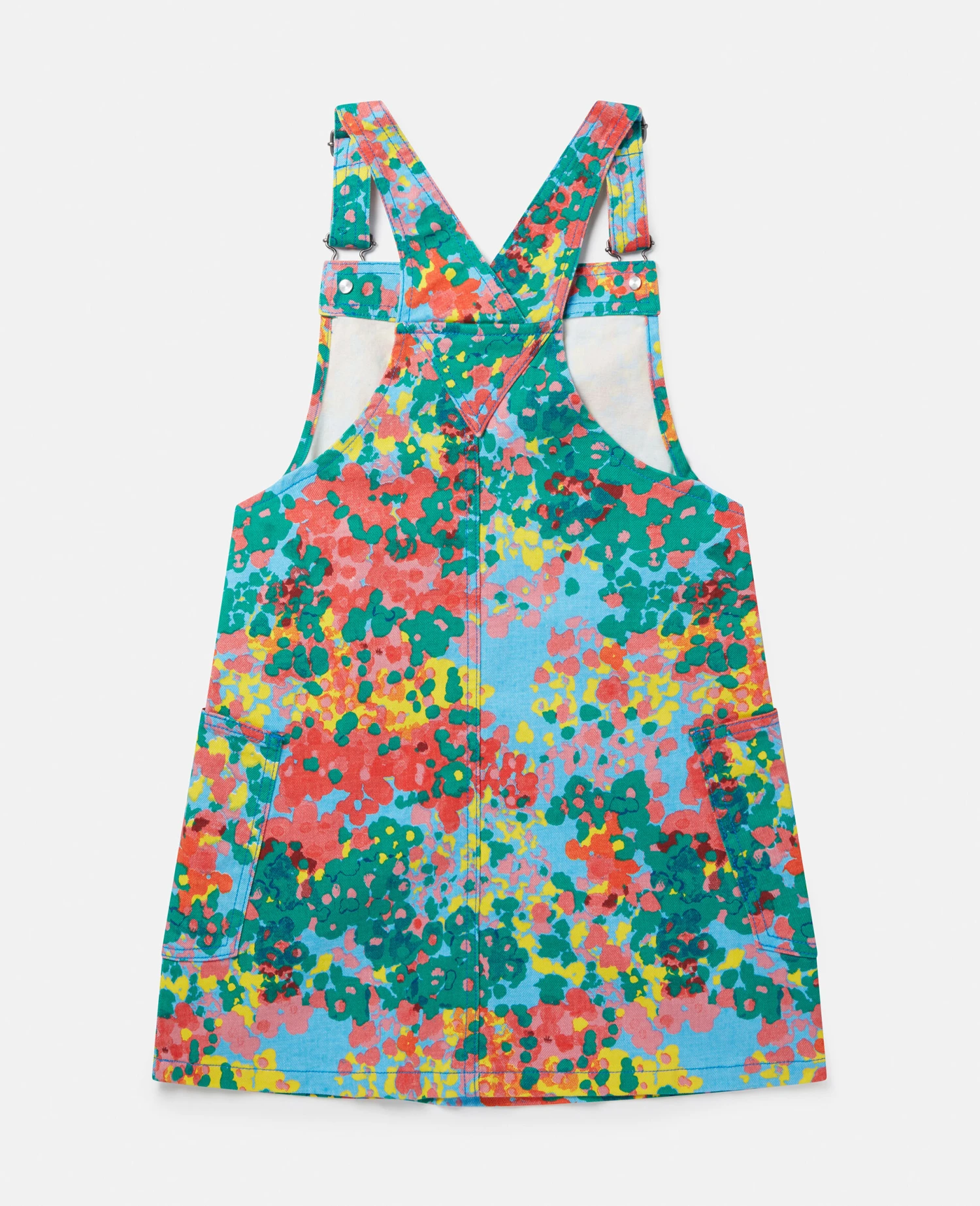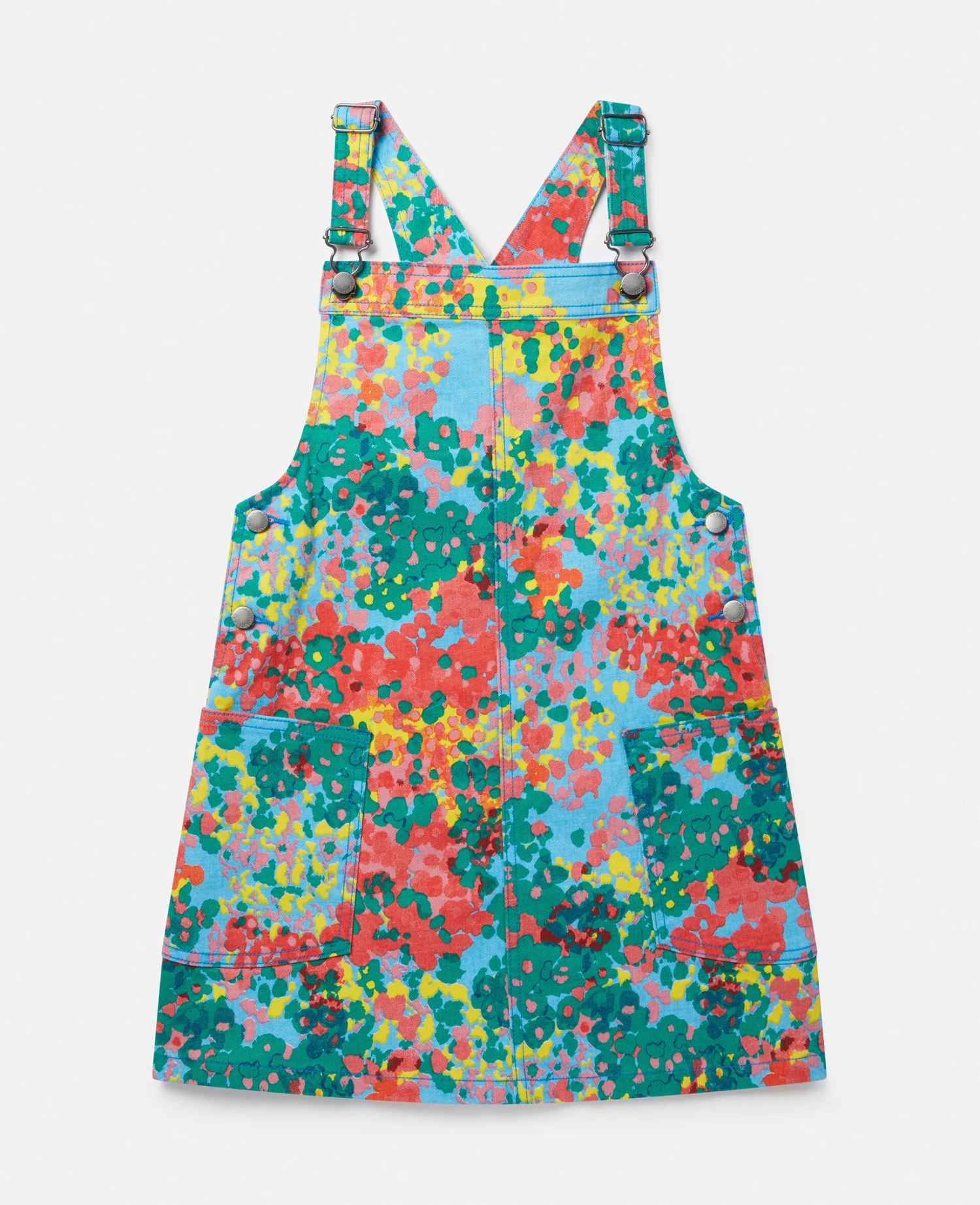 A dream-like painted floral print adds a lively twist to this dungaree dress from Stella McCartney Kids. The dress has a sleek straight neck and classic cross-back dungaree straps, finished with an embossed logo patch.
