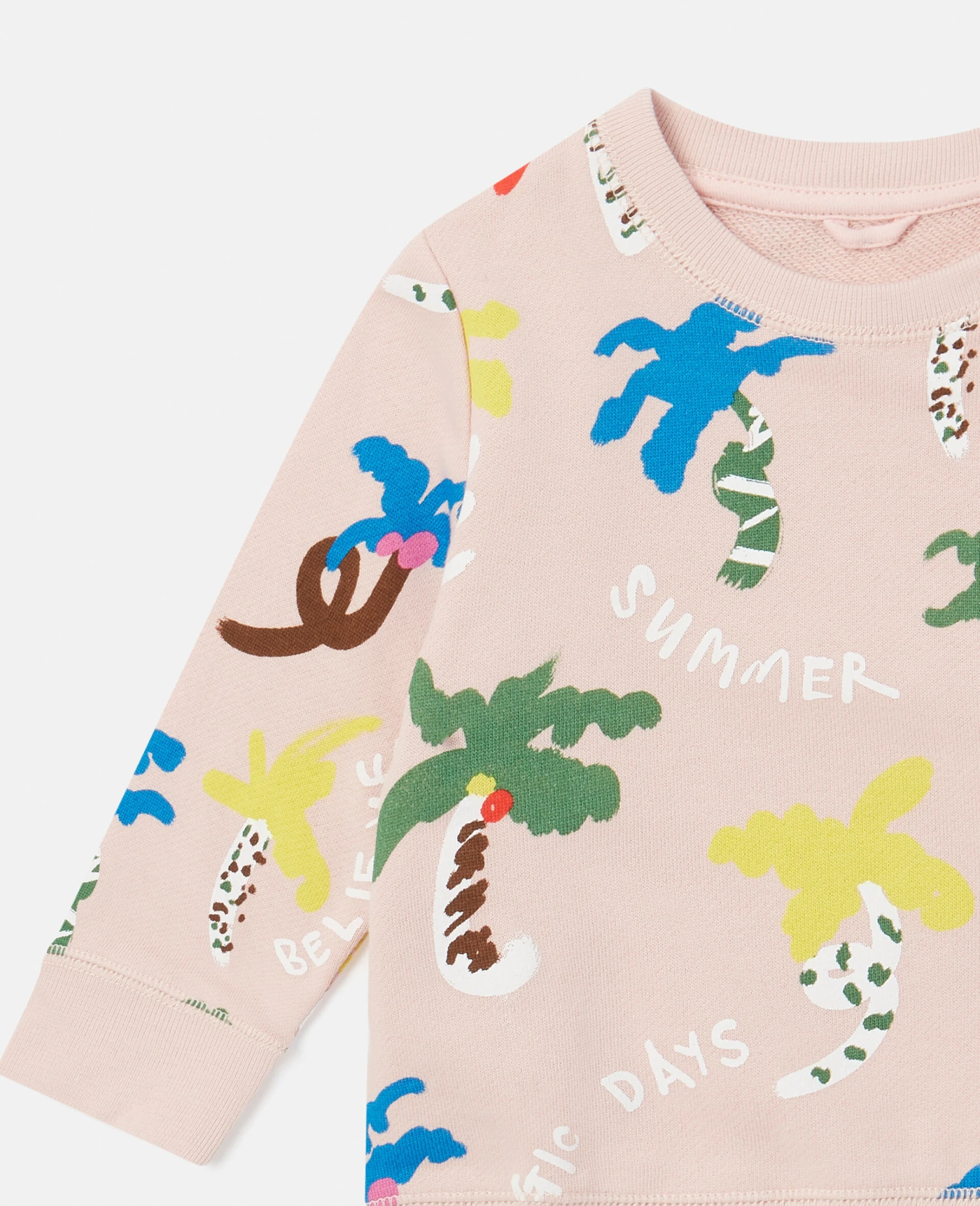 Paint their wardrobe in rainbow brights with this organic cotton sweatshirt from Stella McCartney Kids. The rose pink pullover features all-over palm tree prints and interspersed ‘Good Vibes’ slogans.