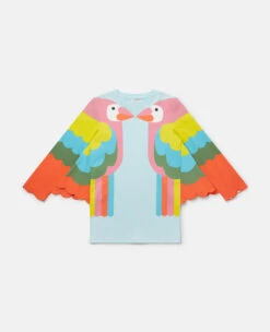 Embrace all of Mother Earth’s natural beauty and joy with this cosy fleece dress. The cotton fleece dress features twin, mirrored parrot details extending into scalloped edge wings.