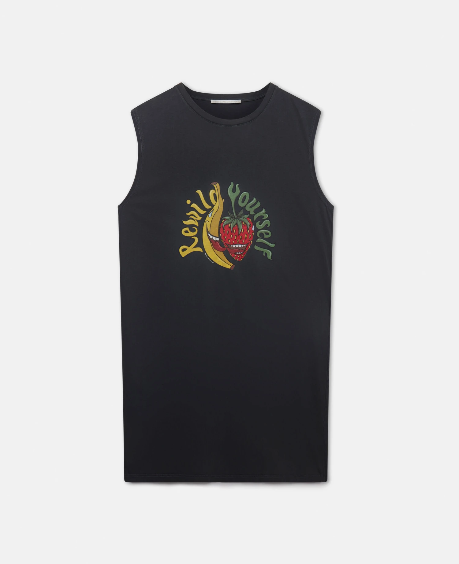 The washed black jersey tank dress is consciously crafted from organic cotton, with a multicolour ‘Rewild Yourself’ slogan at centre front. Wear yours with S-Wave 2 trainers for a casual, conscious cool.