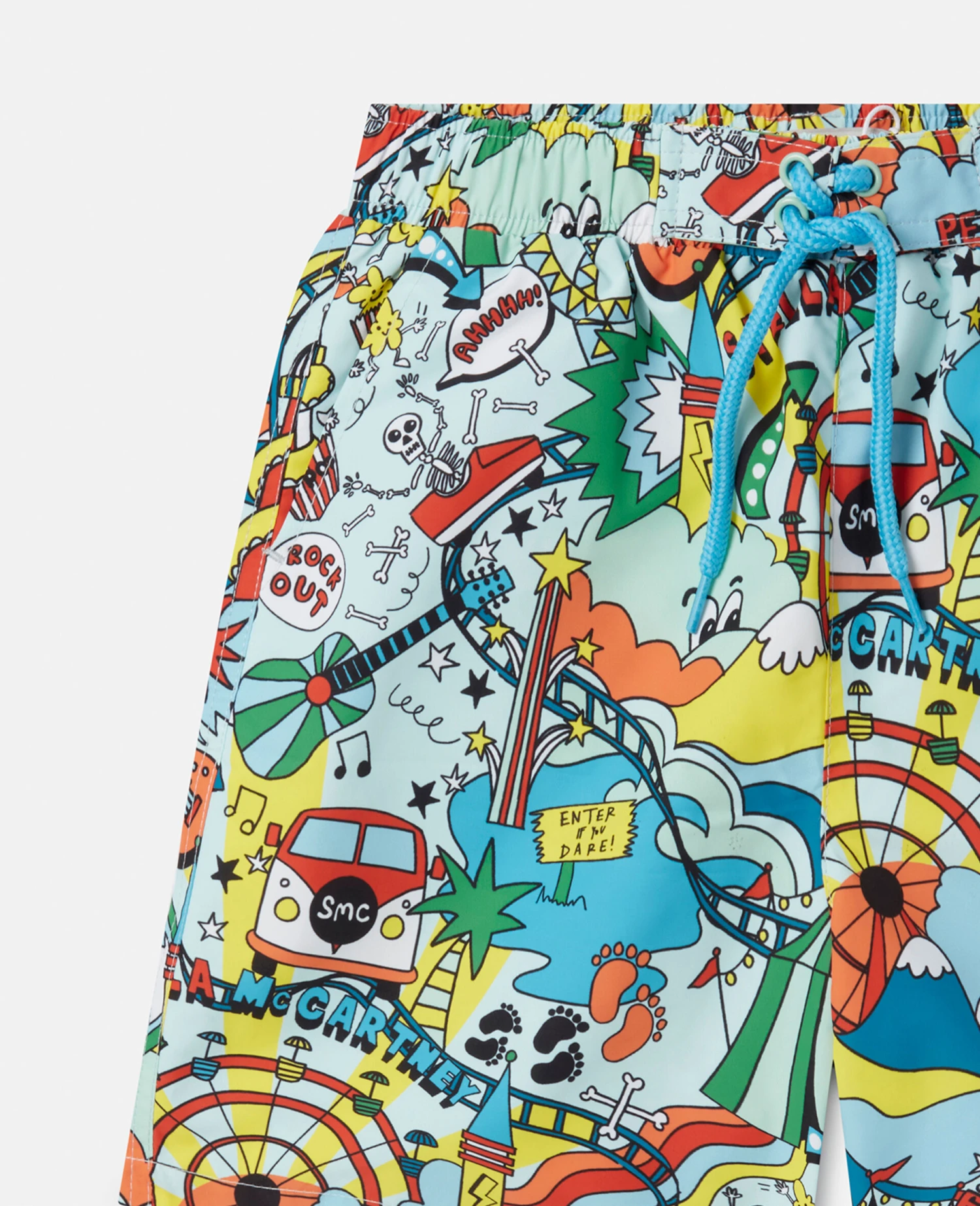 Choose fun first with these fairground-inspired swim shorts from Stella McCartney Kids. Crafted from recycled materials with an internal mesh brief, this pair is decorated with a vibrant all-over rollercoaster print.