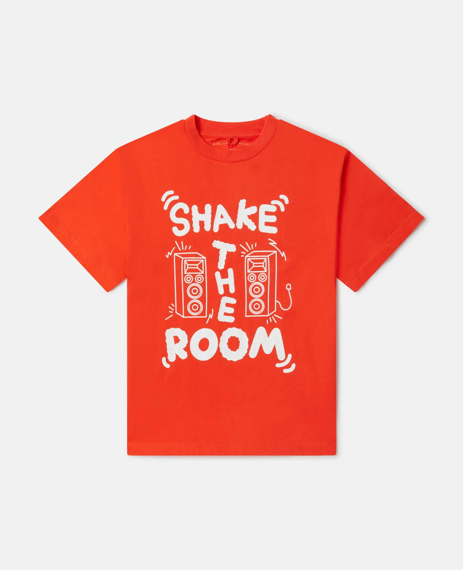 This tomato red t-shirt from Stella McCartney Kids has a cool oversized fit. It is consciously crafted from organic cotton jersey, with a ‘Shake the Room’ graphic at the front.