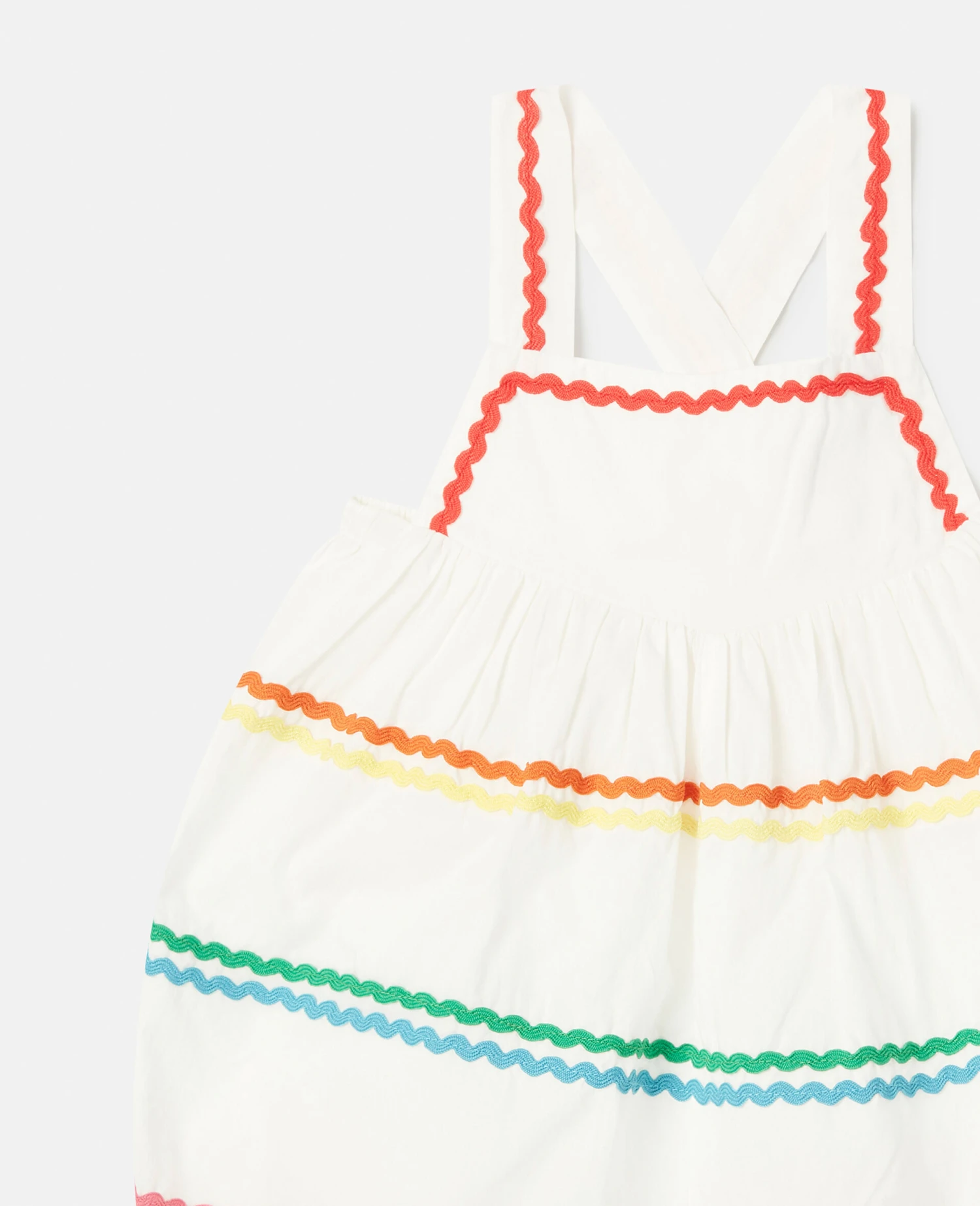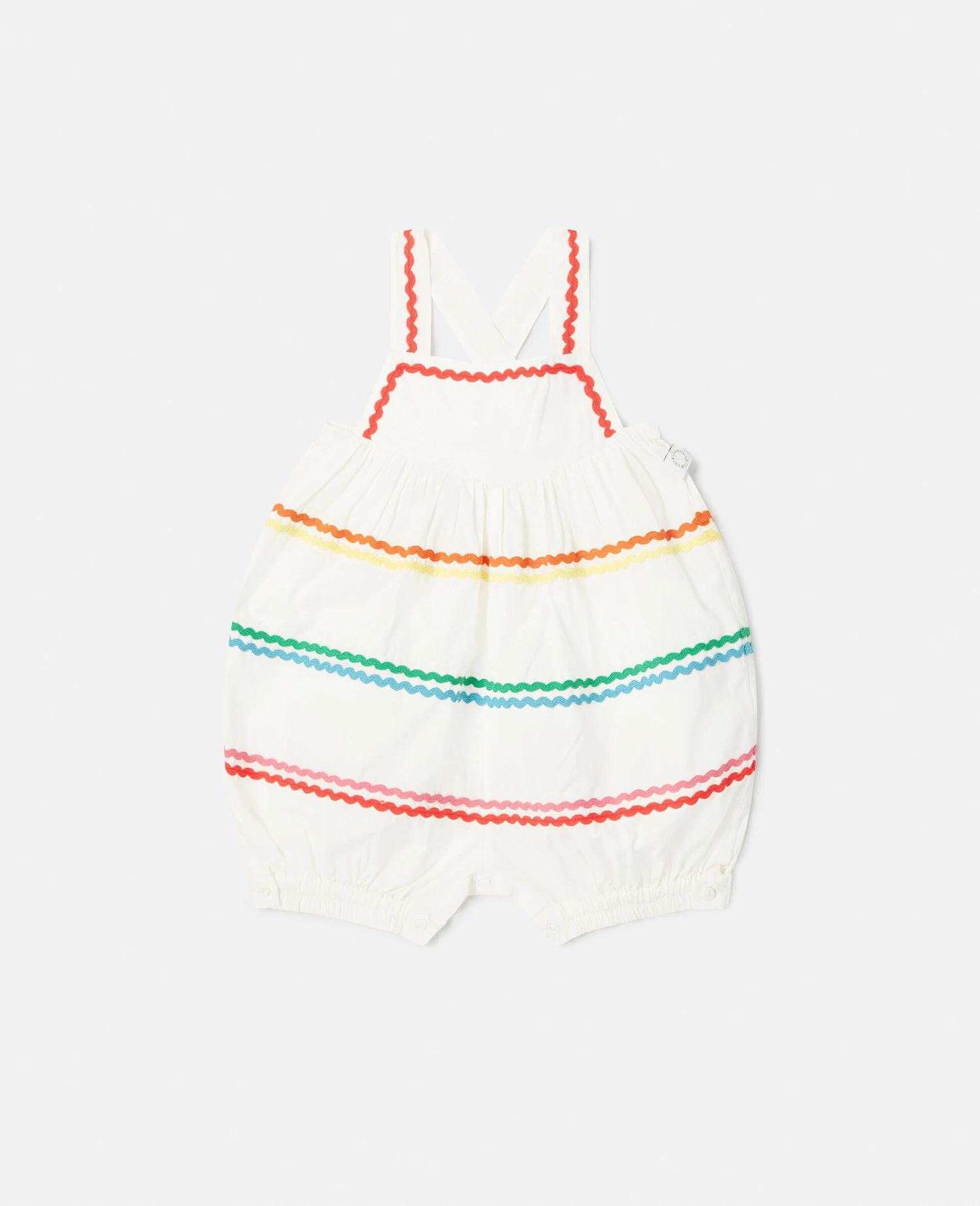 Consciously crafted from organic cotton voile, kinder to Mother Earth and to skin, this romper by Stella McCartney Kids is a colourful addition to baby’s first wardrobe. Colourful squiggle line embroidery frames the body and straps for a sweet funfair-inspired statement.