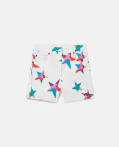 Stella girls will boldly shine bright in these white cotton shorts from Stella McCartney Kids. Consciously crafted from organic cotton gabardine, the shorts have an all-over multicolour star print with classic five-pocket styling.