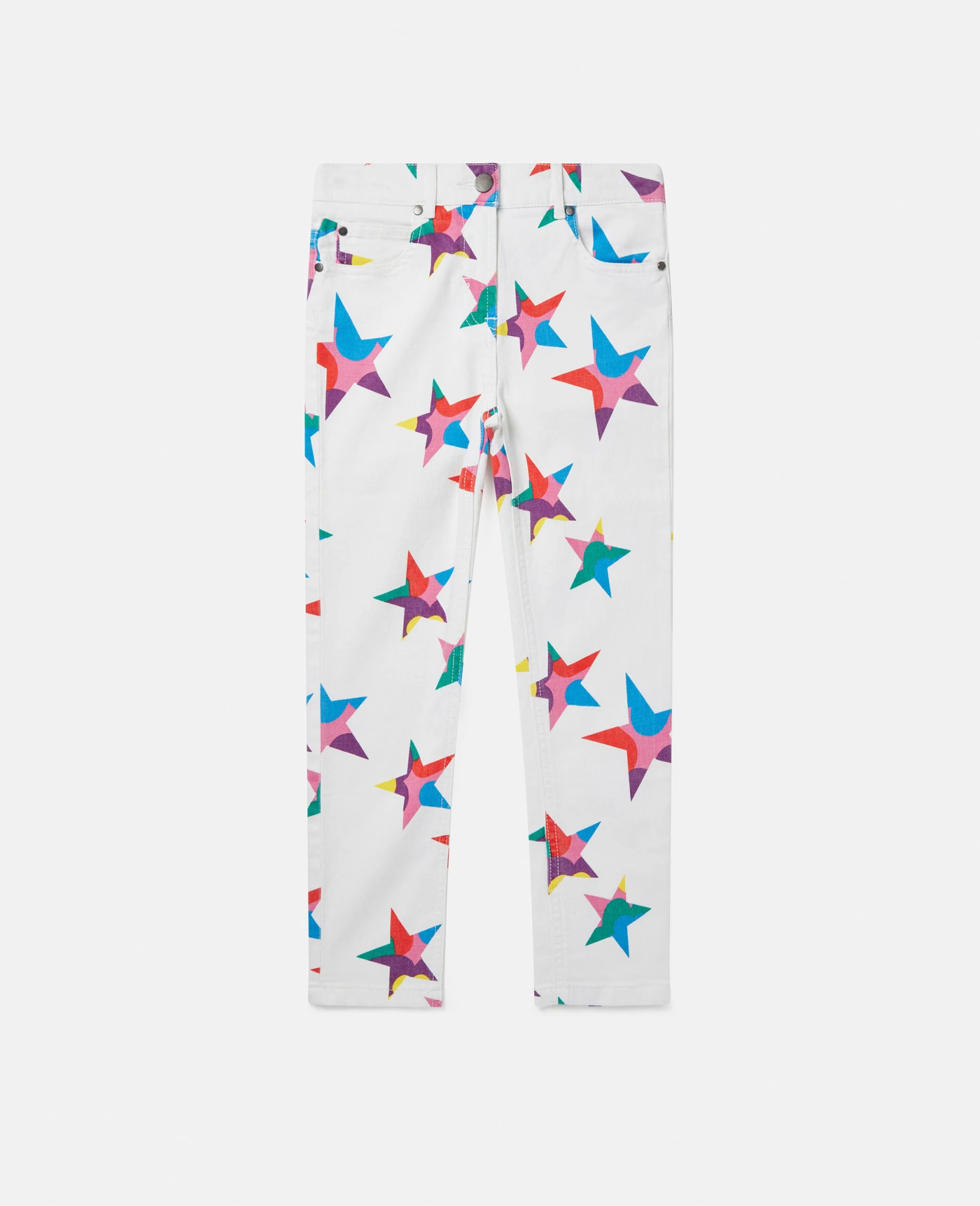 Elevate her denim wardrobe for Spring Summer 223 with these white skinny jeans from Stella McCartney Kids. The five-pocket jeans are covered in an iconic multicolour star print for an instant playful attitude.