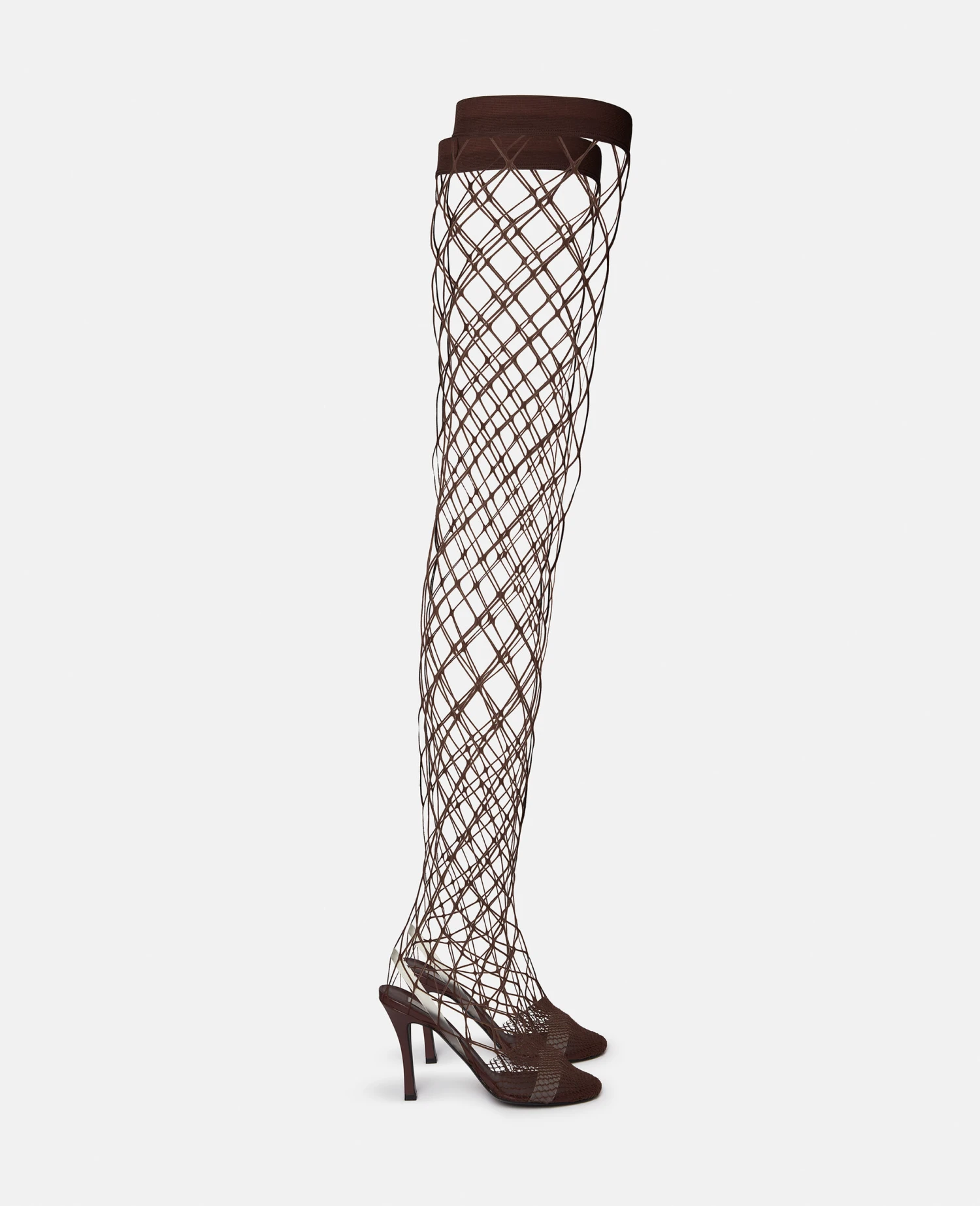 The focus is firmly on summer sensuality with the Stella 1 fishnet boots. Crafted from nylon with a fishnet finish, the ultra-sexy thigh-high boots have vegan Alter Mat trims and a transparent toecap to secure the foot. The stiletto heels are fully lined in solventless, biobased Alter Mat.