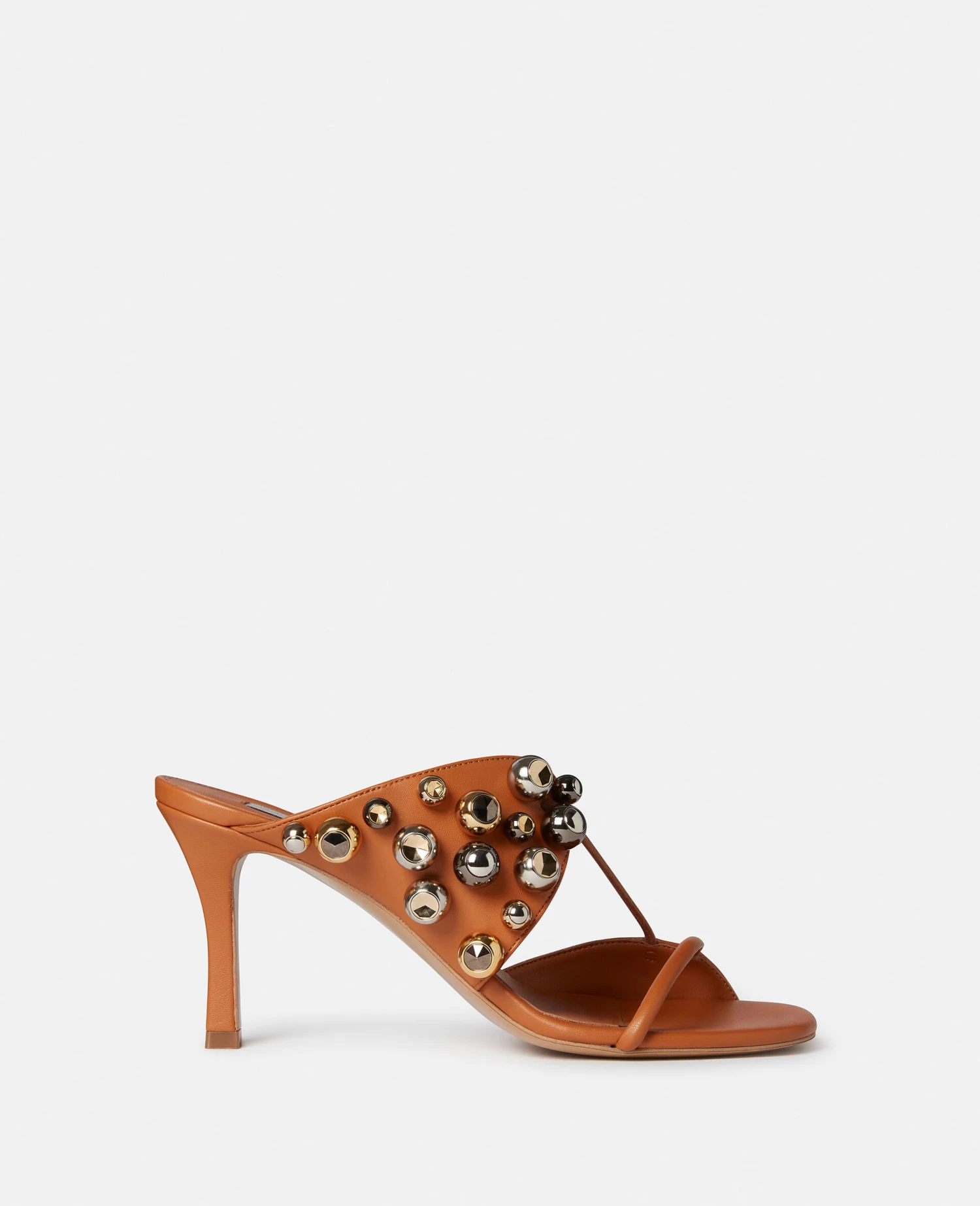 These Stella 1 mules are responsibly made from biobased Alter Mat vegan alternative to animal leather with spherical multi-galvanic studs at its upper. Tough yet feminine, the heels strike a dichotomy that emphasises the curves of the foot.