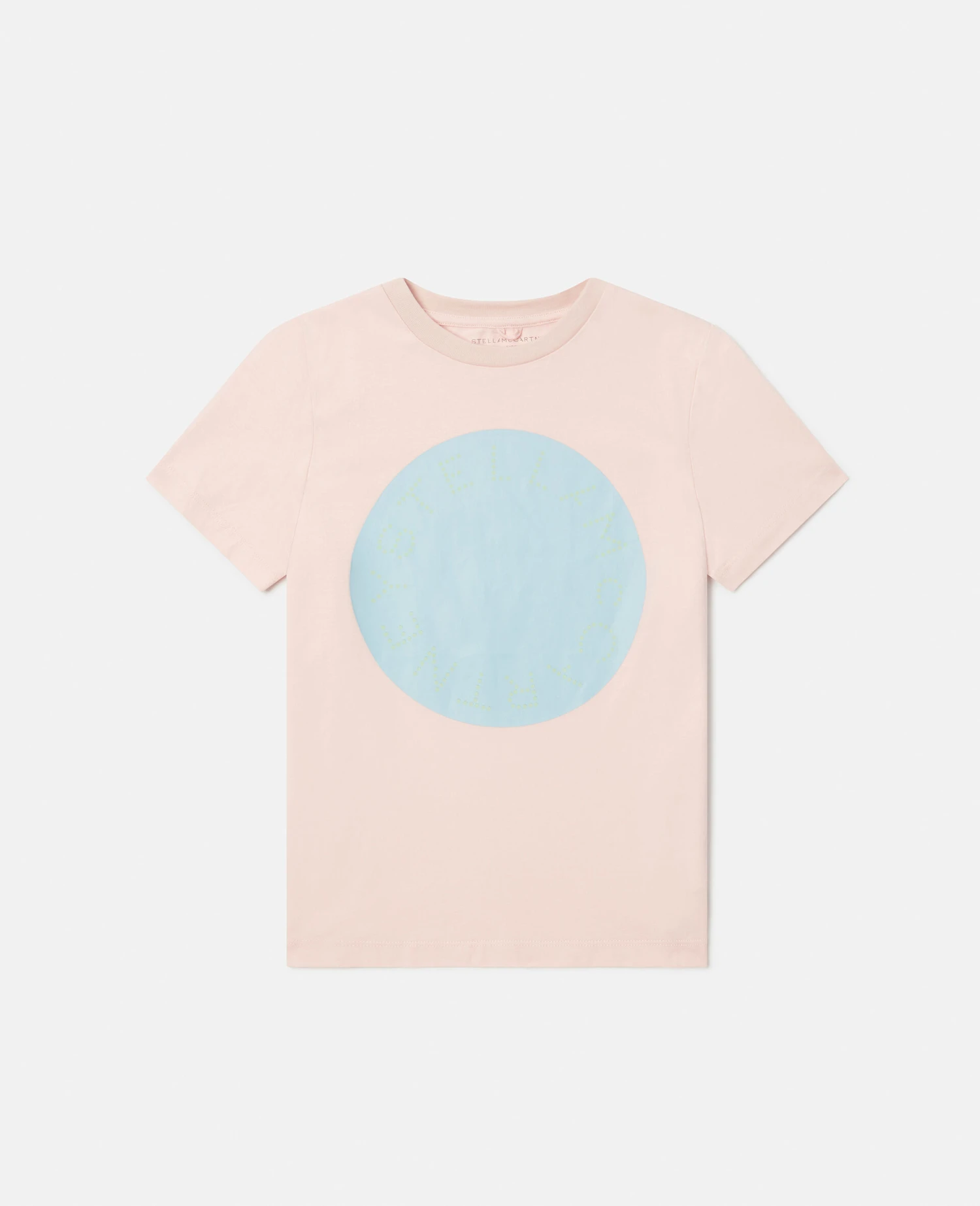 Paint their wardrobe in soft-hued pastels with this cotton jersey t-shirt from Stella McCartney Kids. The baby pink tee features a blue logo disc at centre front.