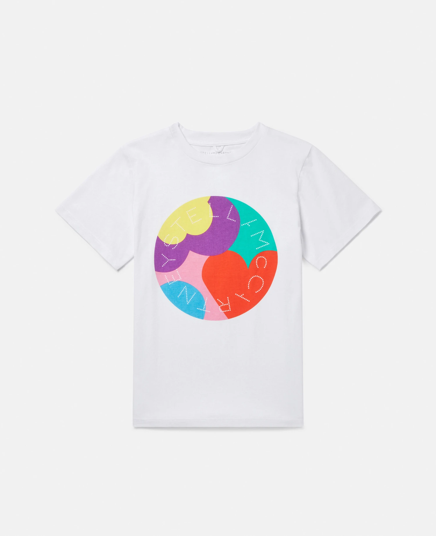 Elevate the everyday with this white graphic t-shirt from Stella McCartney Kids. The t-shirt has our signature circular logo at the front, placed atop a vibrant love graphic disc.