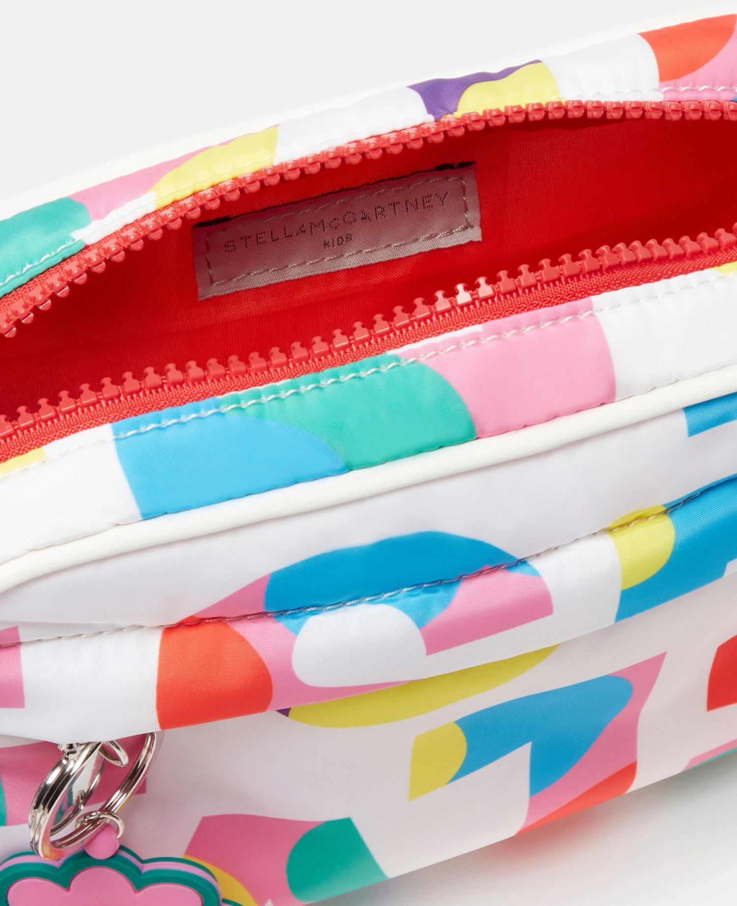 This Stella Logo shoulder bag from Stella McCartney Kids features a turbo-charged pop-colour ‘Stella’ design allover. Crafted from woven polyester, the bag has a rainbow Stella McCartney logo canvas shoulder strap with a fun detachable flower charm.