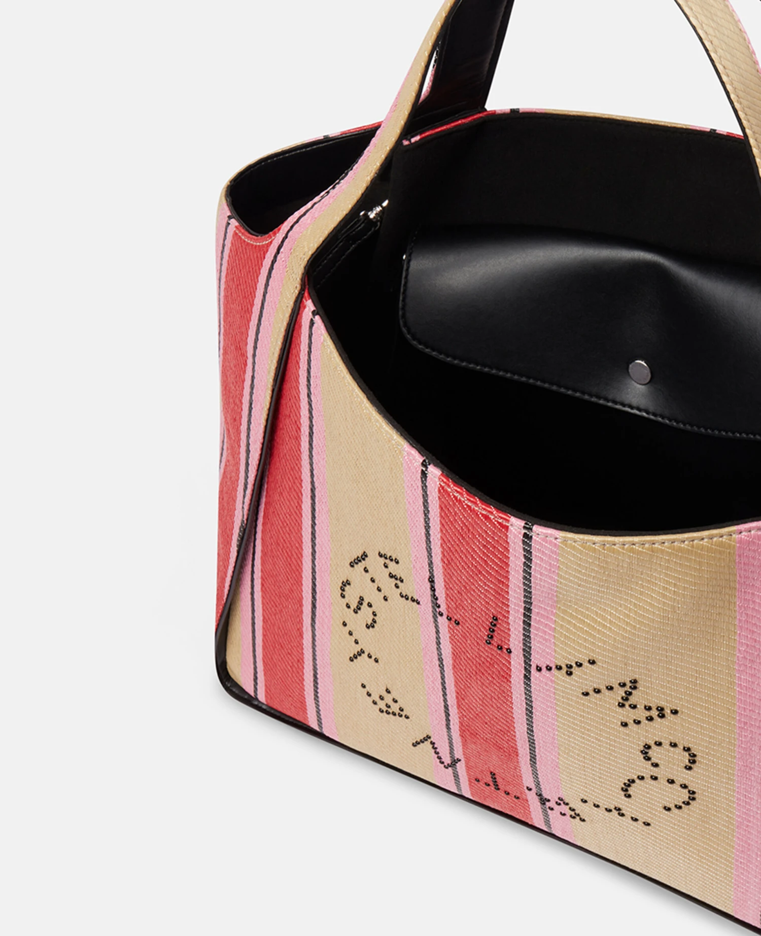 This Stella Logo tote bag is consciously crafted from raffia, with playful vibrant pink stripes. Our perforated, circular logo at the front offers an instantly recognisable look. Use the detachable pouch to store essentials.