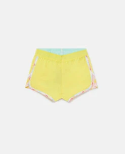 For active little ones, these Stella McCartney Kids shorts are made to be moved in. The bright lemon yellow shorts have a multicolour logo tape edge and breathable mesh panels.