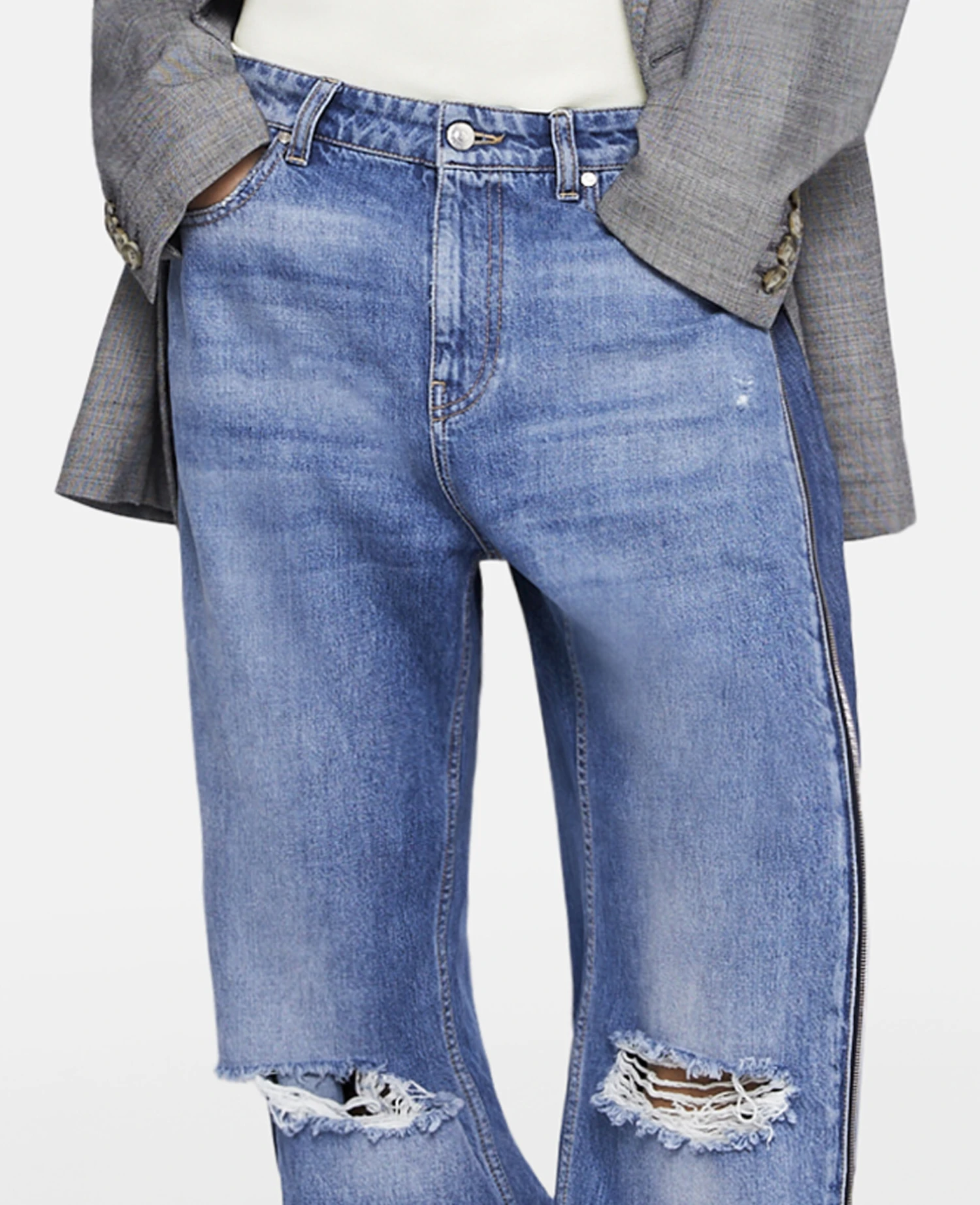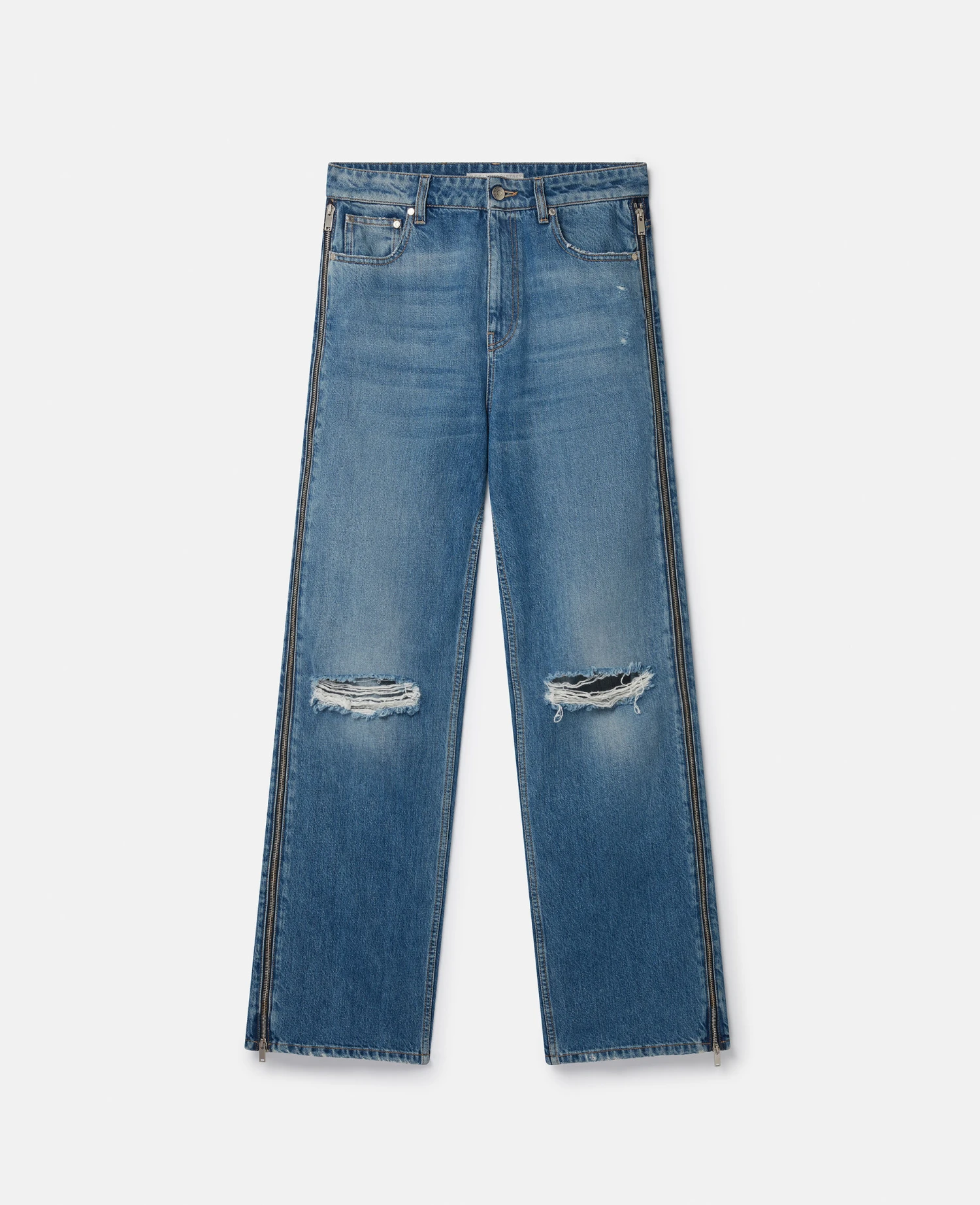 Build your Summer 223 denim wardrobe with these straight leg jeans from Stella McCartney. The jeans are crafted from organic cotton with a vintage wash and hand-frayed and torn knees.