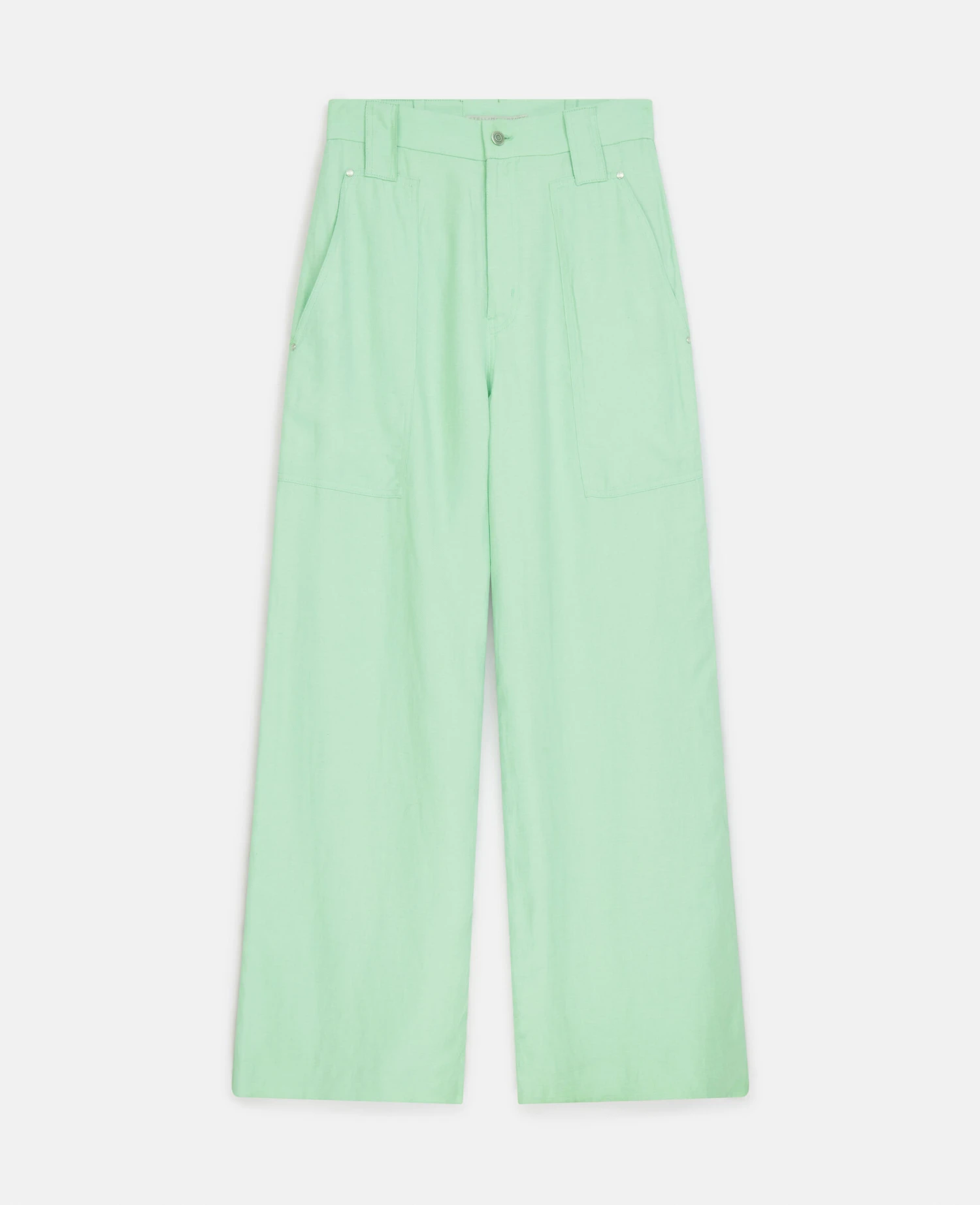 In mint green, these wide leg trousers from Stella McCartney lend a dream-like effect to Summer 223. The trousers are tailored from forest-friendly viscose-linen twill, responsibly sourced and never from ancient, protected or endangered forests – part of our zero-deforestation commitment.